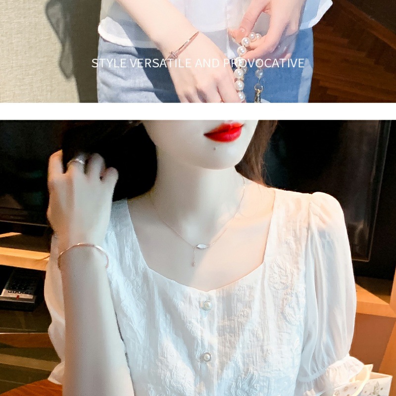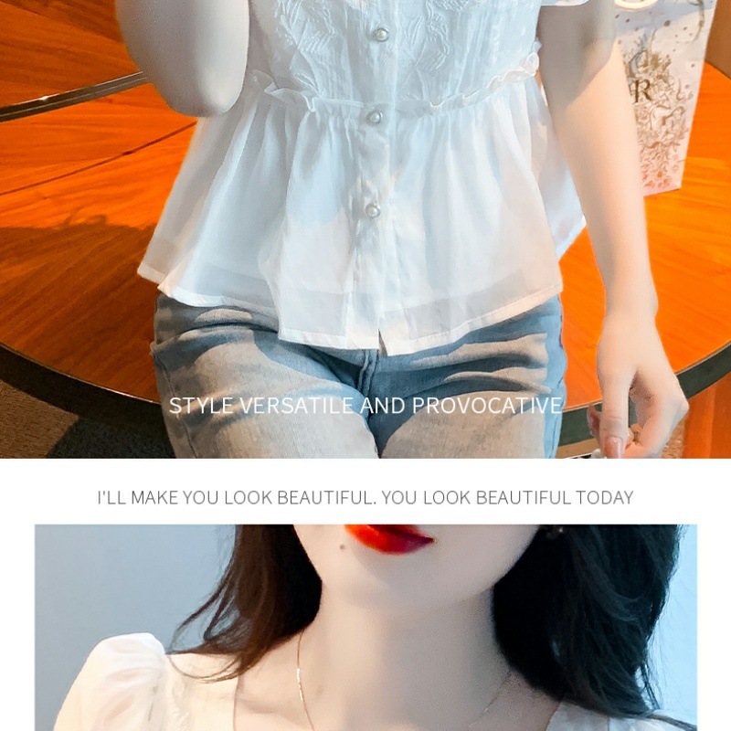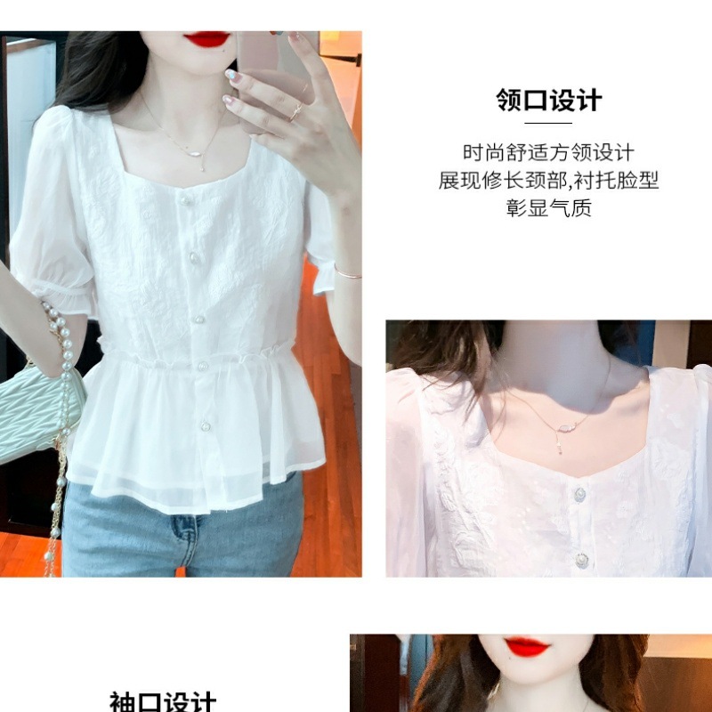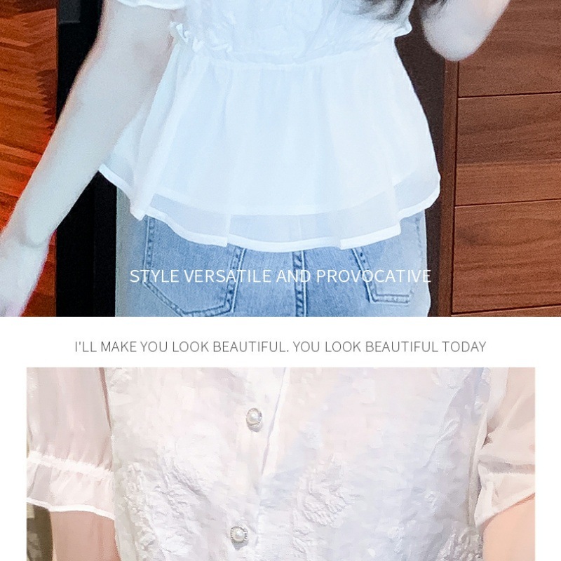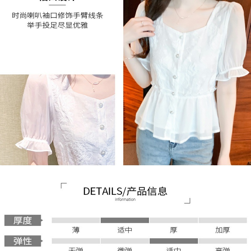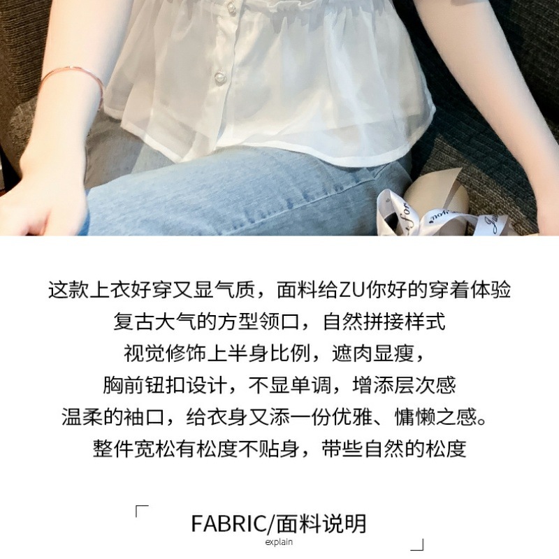반팔 쉬폰 셔츠 여성 여름 2024 새로운 패션 서양식 연령 감소 셔츠 허리를 덮은 배꼽 레이스 녹색 마이크로스토어 가기