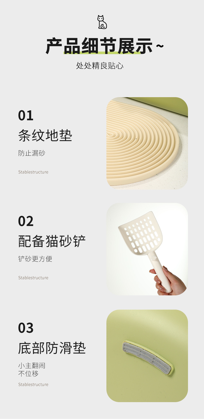 • ??신소재 업그레이드 - 모래방지 59cm 모델 [오프화이트]에는 고양이 모래주걱이 함께 제공됩니다.