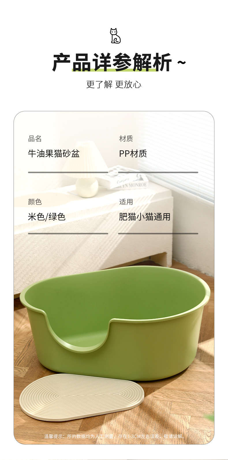 • 55CM 넓어지고 확대된 고양이 배변 상자 [라이트 밀크 그린]