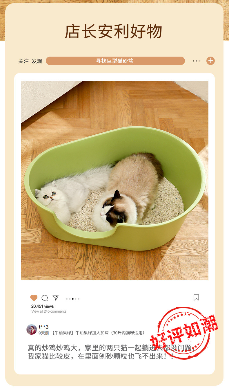 • ??업그레이드된 녹색 고양이 배변 상자 50CM [녹색 주걱 포함]