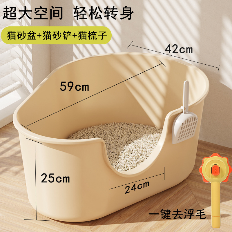 • 61CM 넓어지고 확대된 고양이 배변 상자 [베이지]