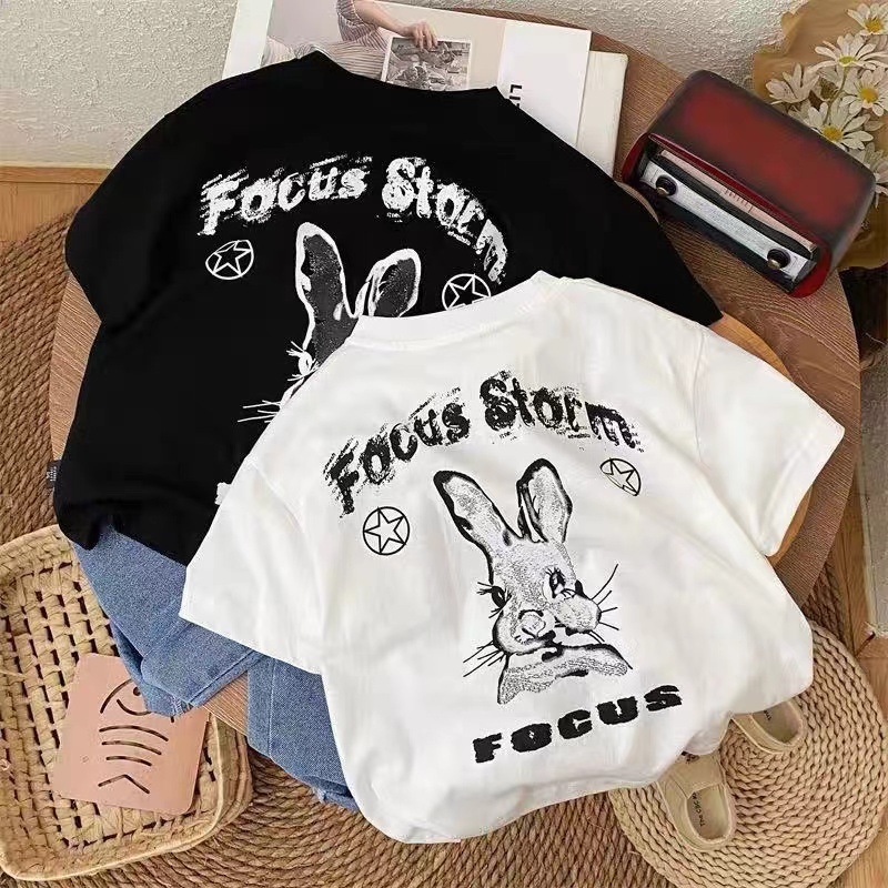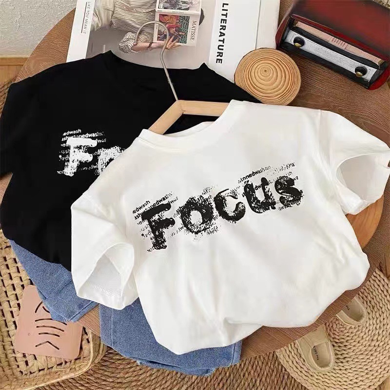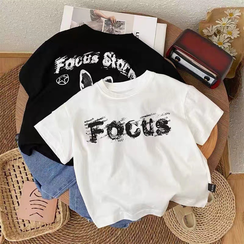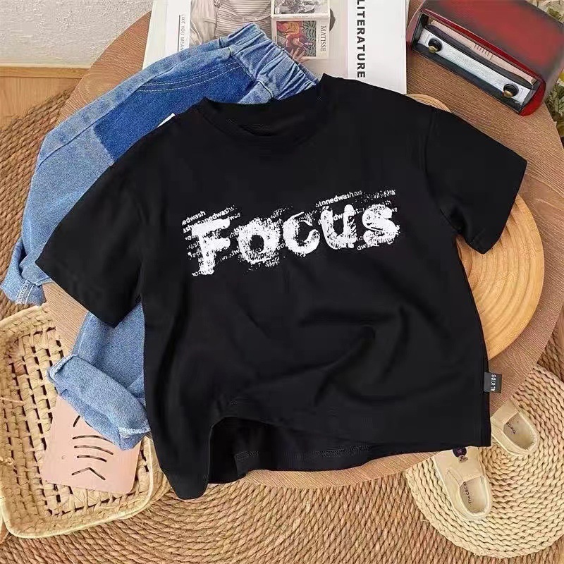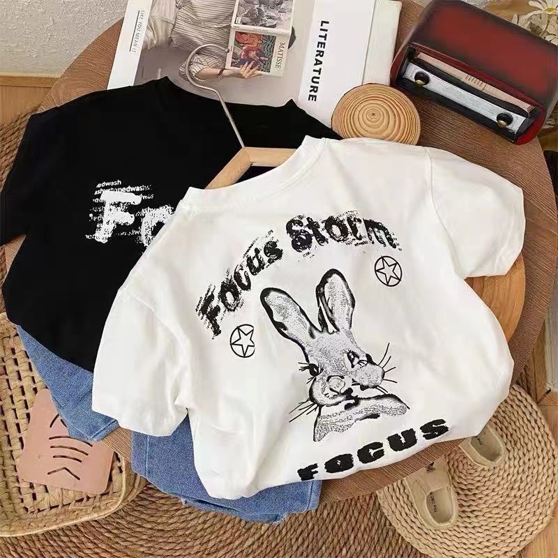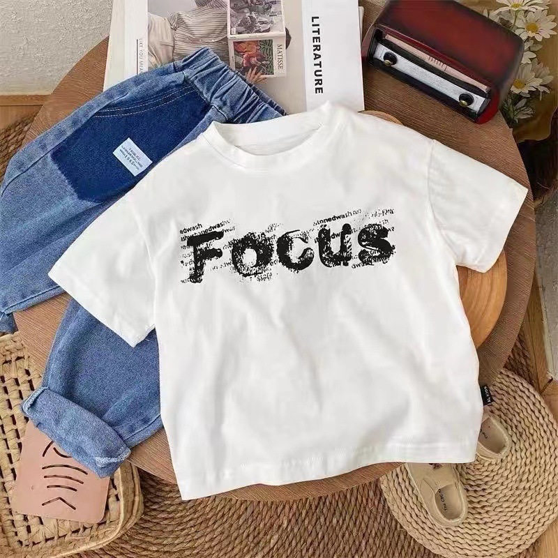 코튼 어린이 반팔 티셔츠 느슨한 한국 스타일 캐주얼 어린이 서양식 올 매치 여름 2024 새로운 반팔 티셔츠스토어 가기