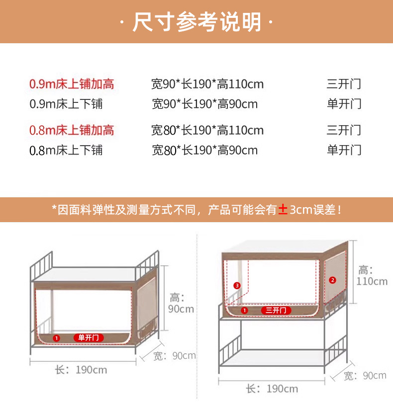 • 하단 침대 폭 90 * 길이 190 * 높이 90 [단일 도어 - 암막 커튼 없음] 접합 브래킷 없음