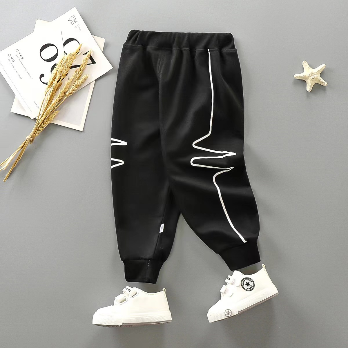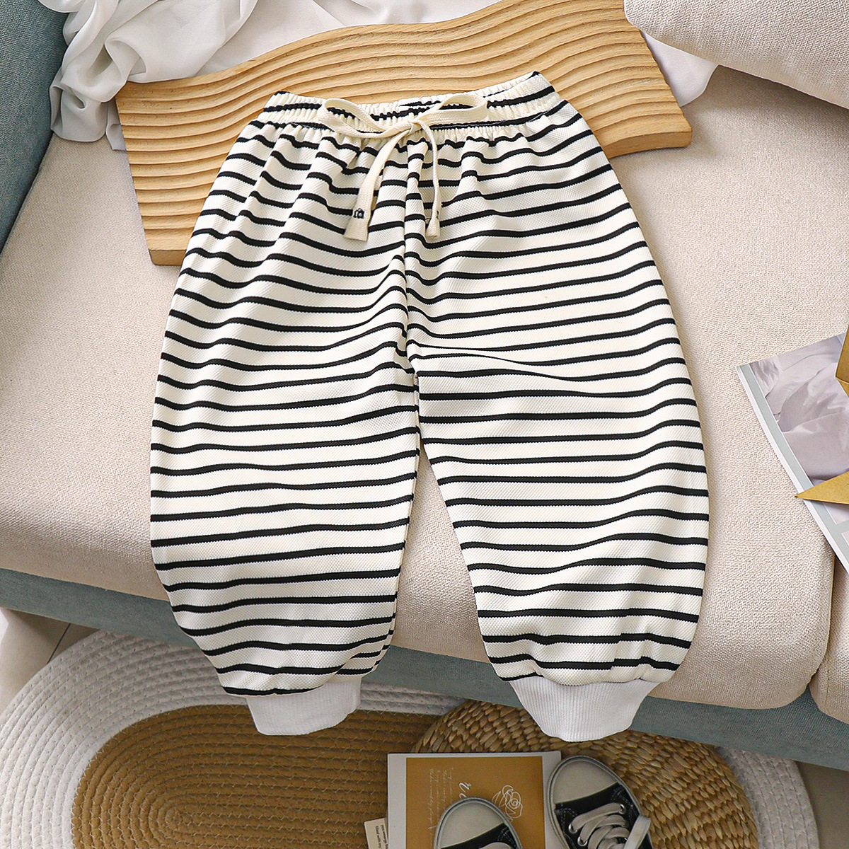 바지 아기용 긴바지 남아용 프린트 곡선 줄무늬 스포츠 바지 부모-자녀룩 중소형 아동 캐주얼 남아용 다용도 바지스토어 가기