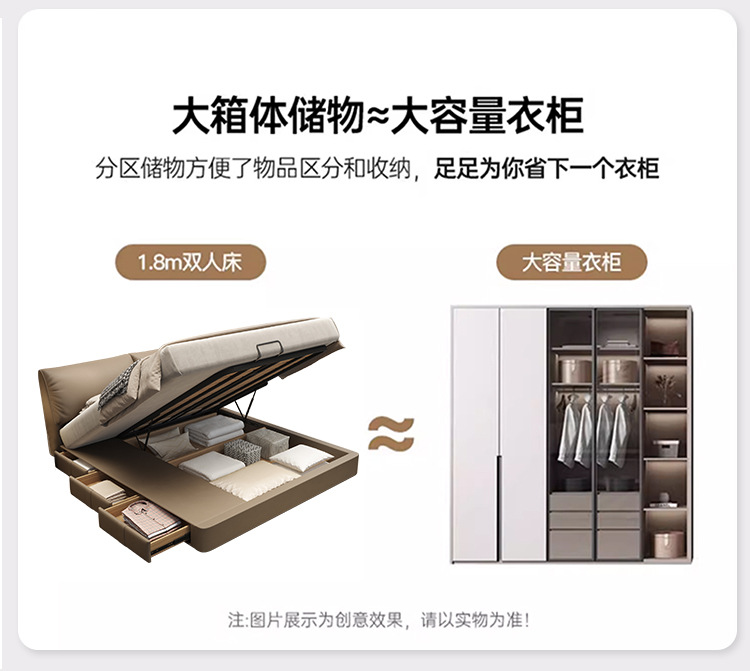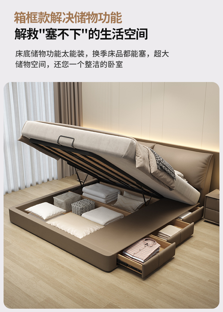 현대 간단한 코끼리 귀 저장 높은 상자 침대 빛 고급 가죽 침대 마스터 침실 크림 스타일 더블 소프트 가방 보관 침대스토어 가기