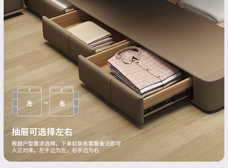 • 나파 가죽 침대 + 캐비닛 1개 + 5성급 라텍스 매트리스