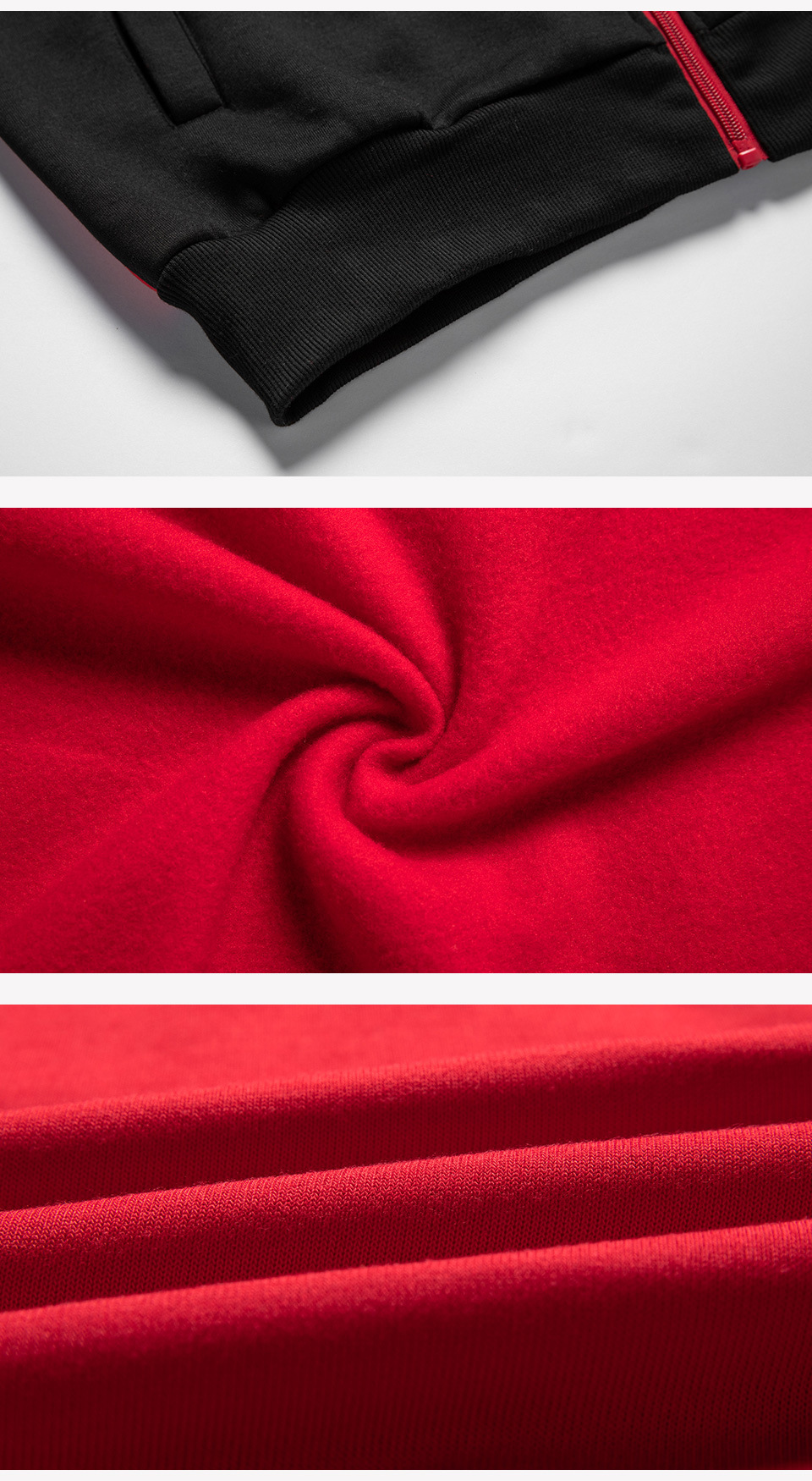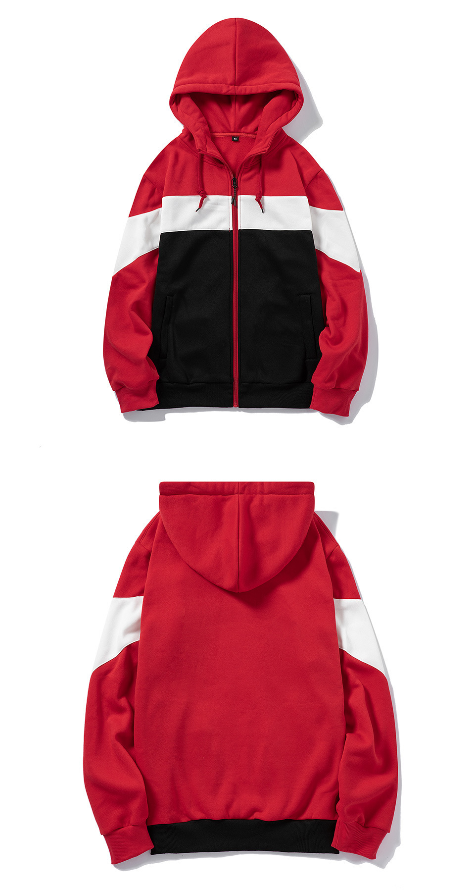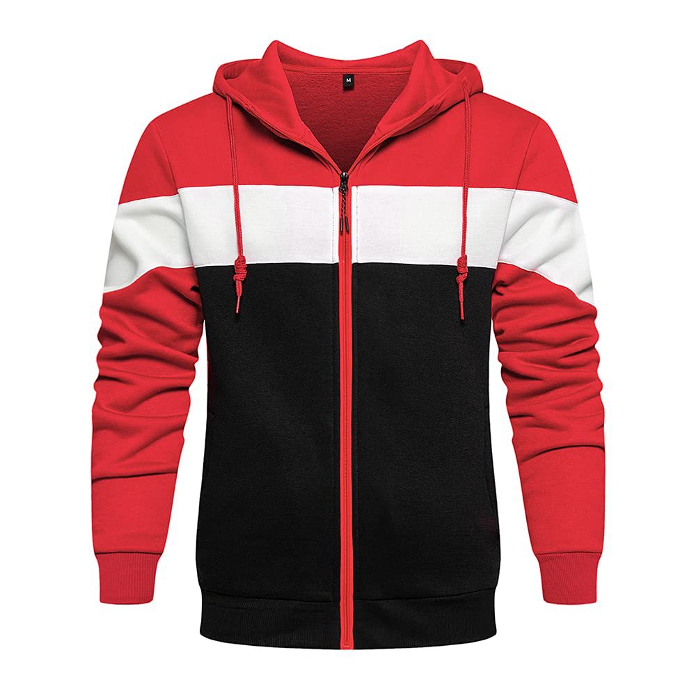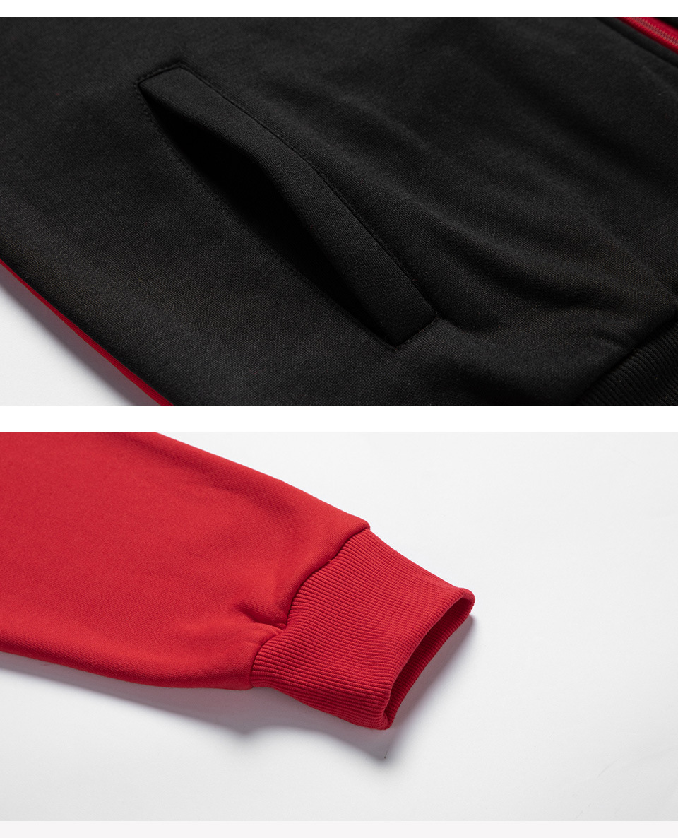 • 빨간색과 검은 색 후드 스웨트 셔츠
