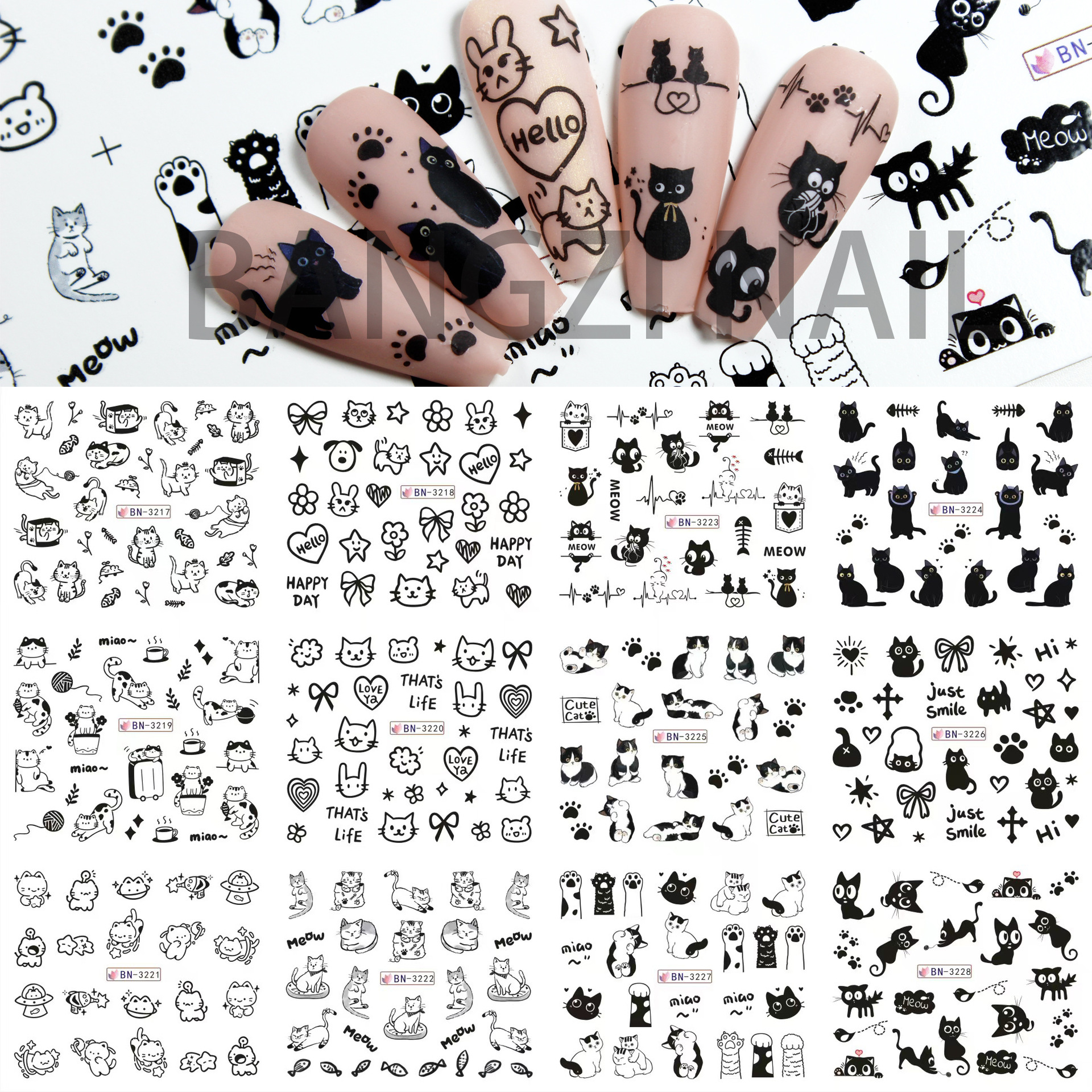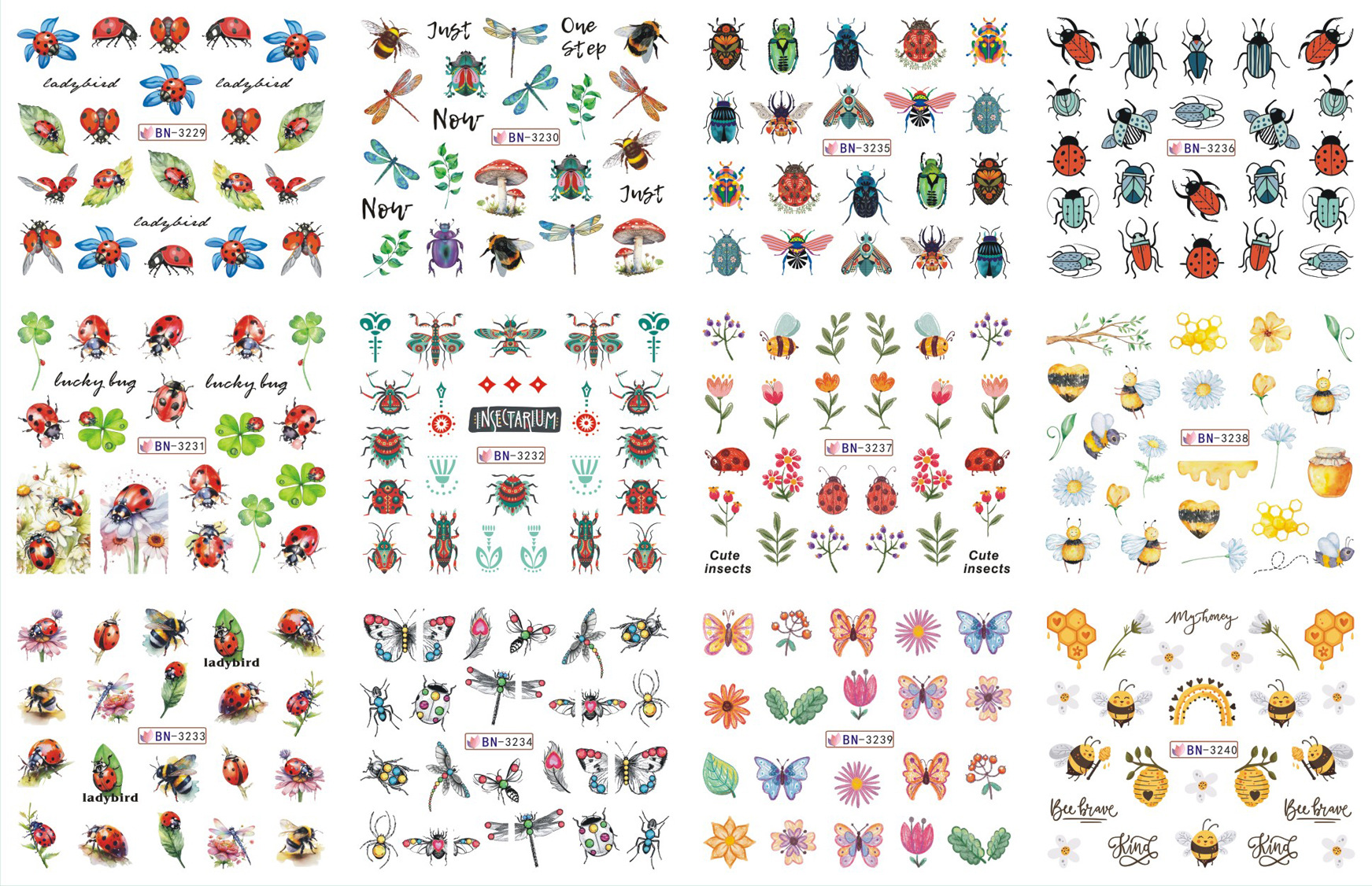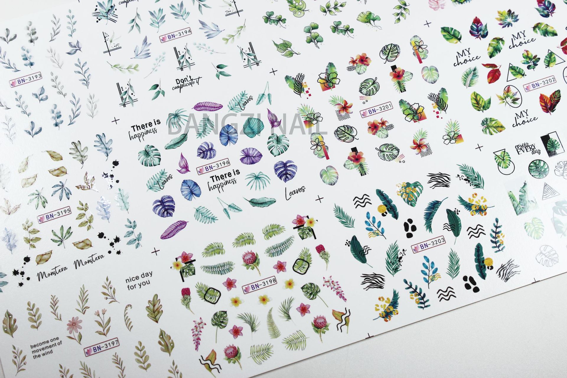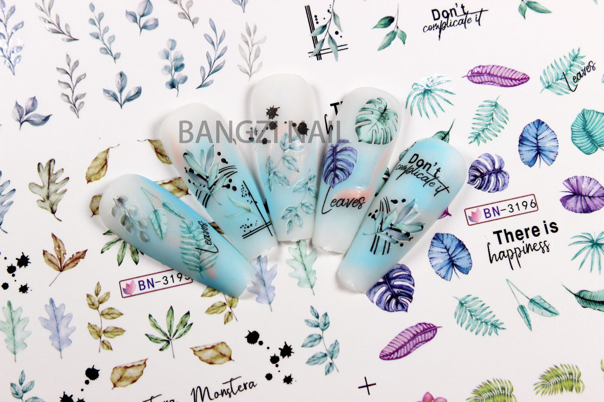 국경 간 뉴 네일 아트 워터 마크 스티커 여름 섬 일몰 코코넛 나무 식물 잎 큰 워터 마크 네일 스티커스토어 가기