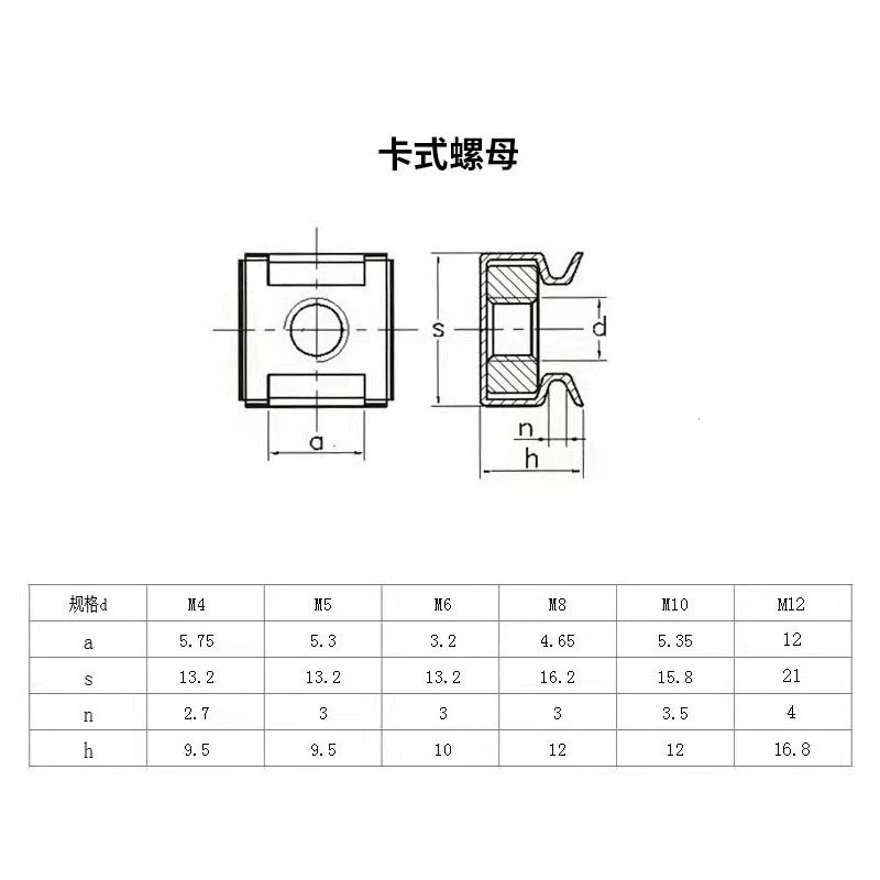 카세트 너트 아연 도금 니켈 도금 캐비닛 플로팅 너트 스팟 도매 스테인레스 스틸 크라운 너트 클립 클램핑 너트