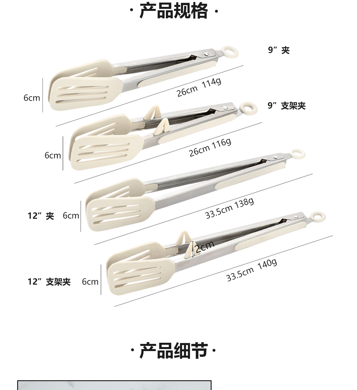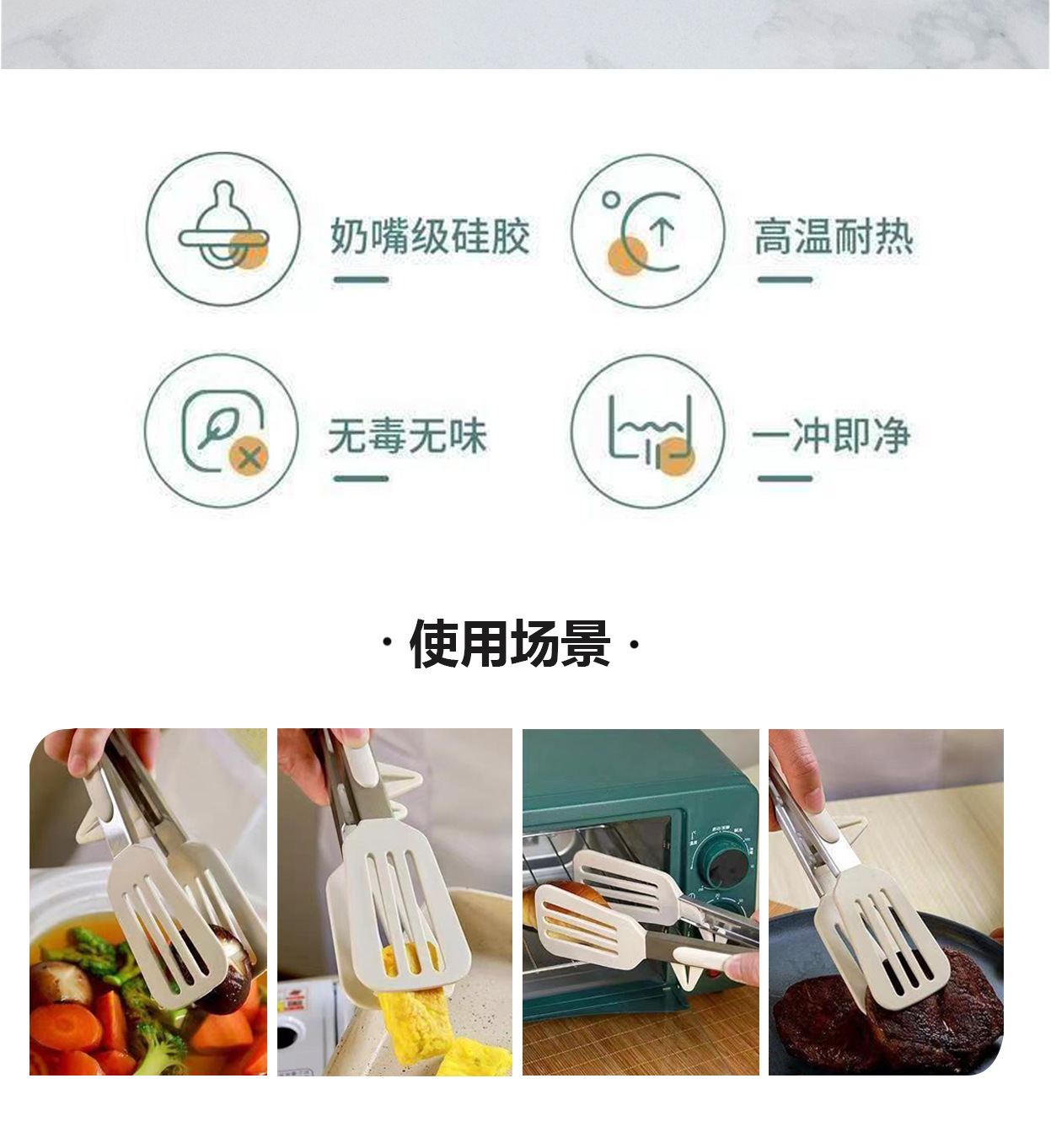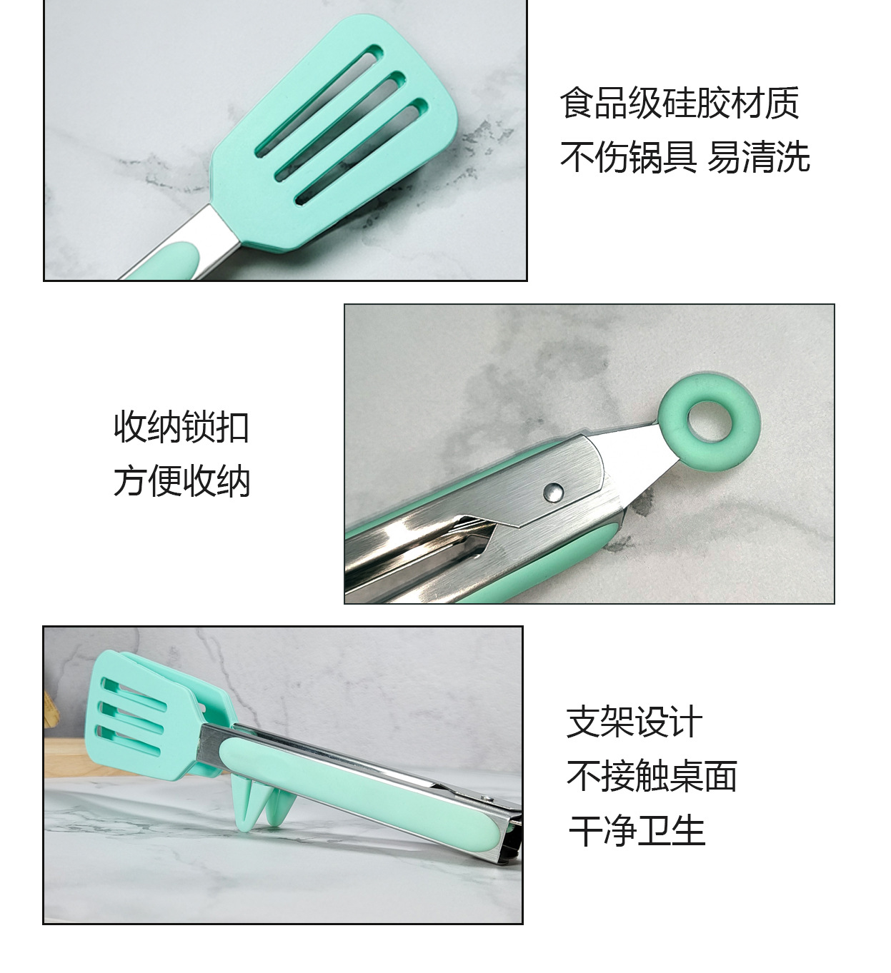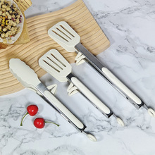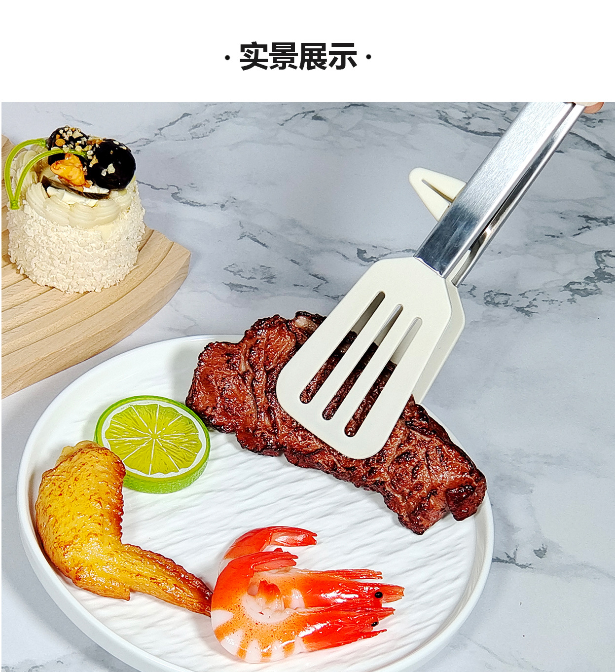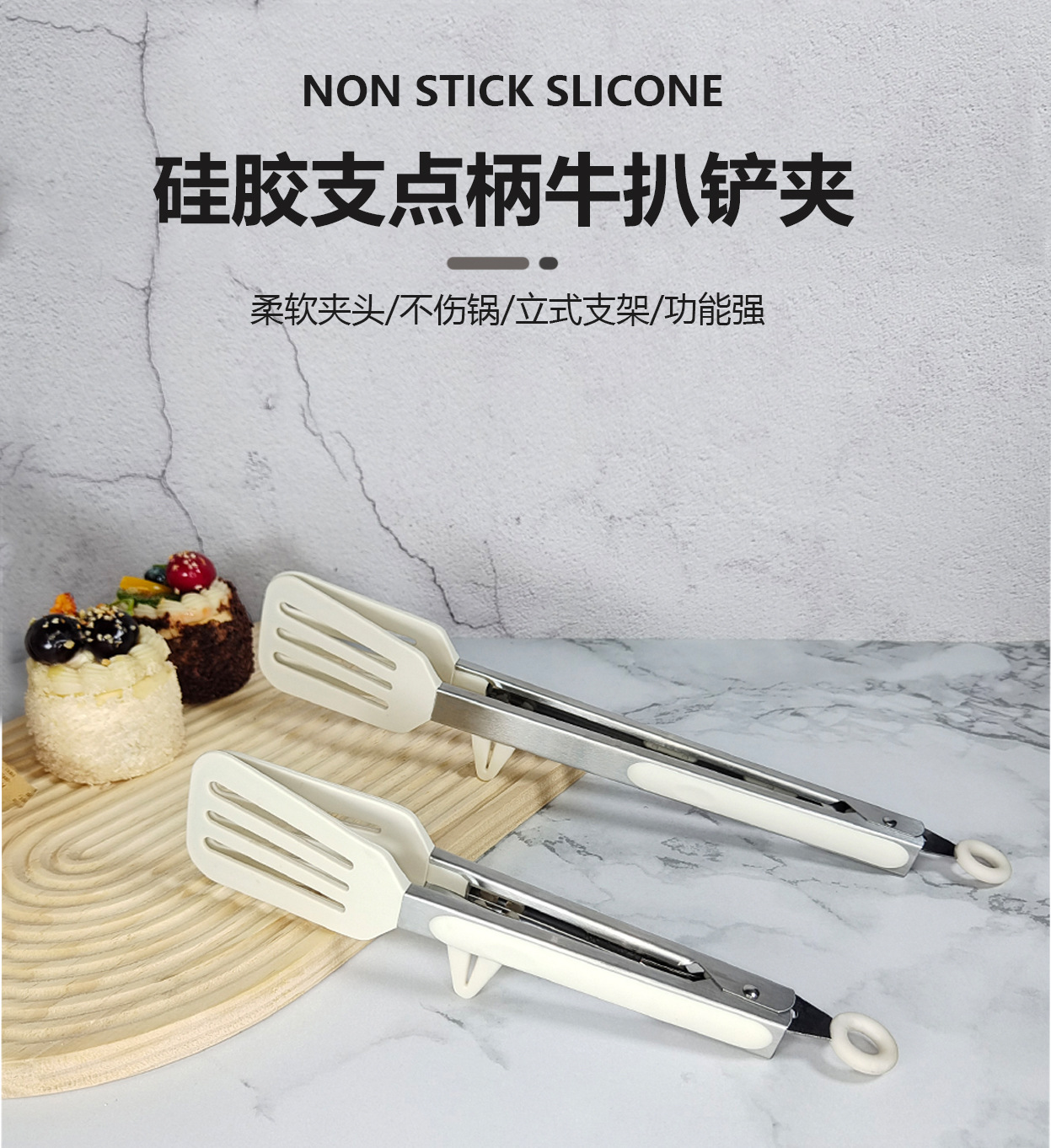 硅胶食物夹户外烧烤夹不锈钢牛扒铲夹耐高温防烫夹肉夹面包FDA