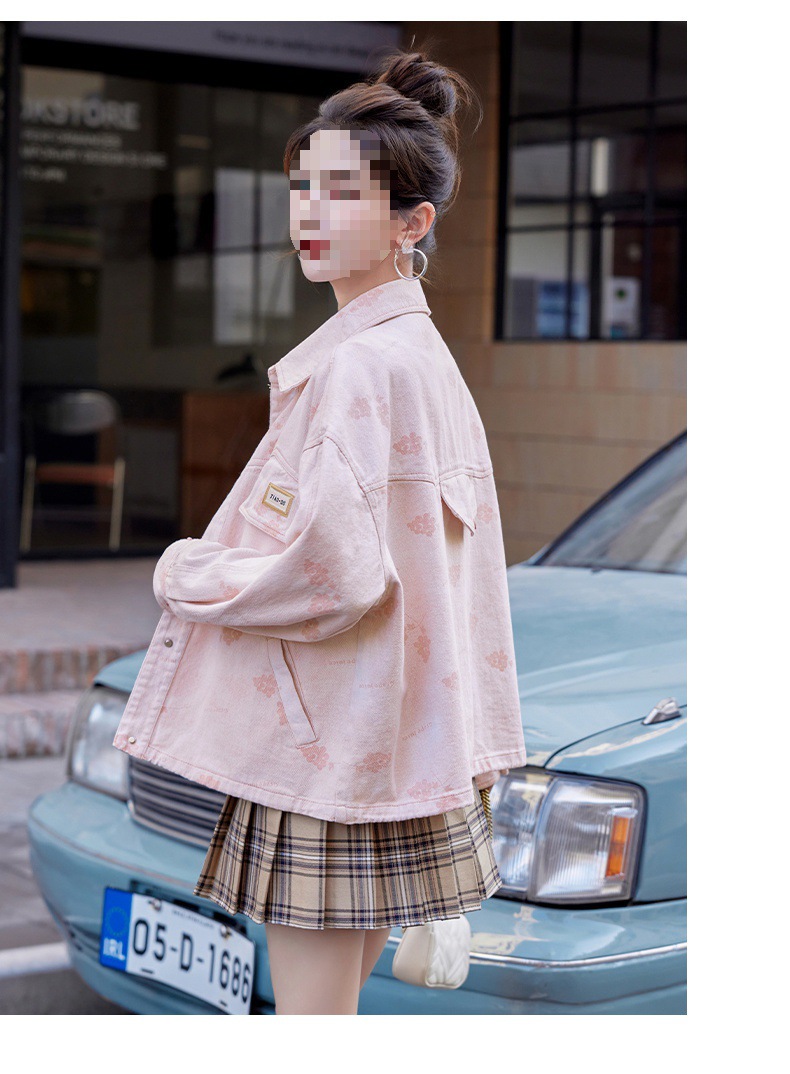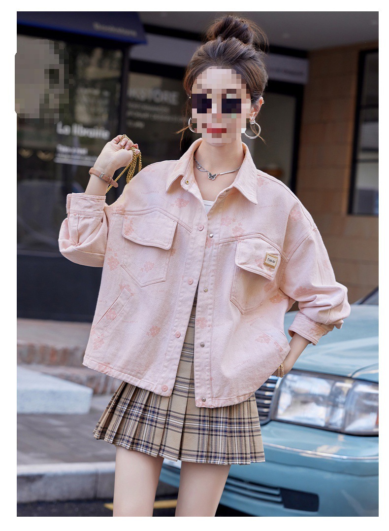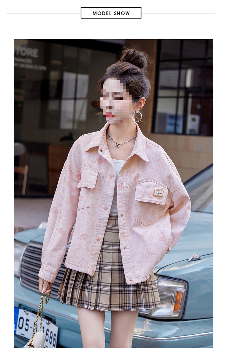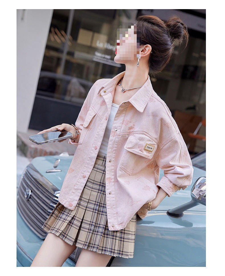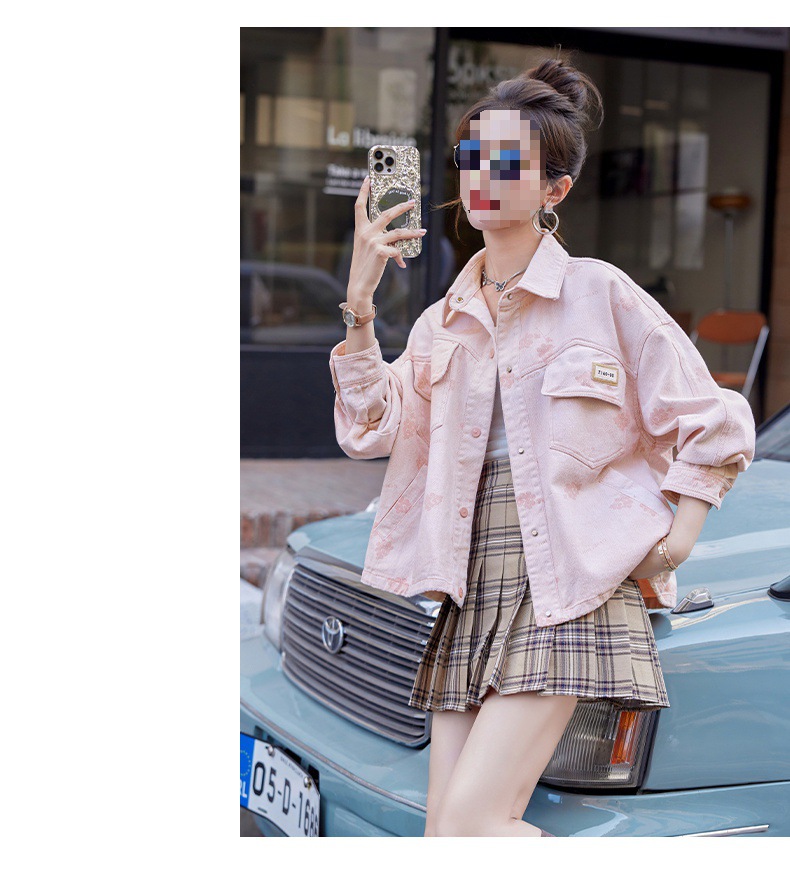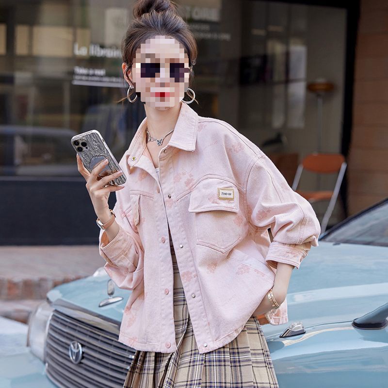 인쇄 된 핑크 데님 재킷 여성의 봄과 가을 2024 작은 캐주얼 용 새로운 하이 엔드 우아한 느슨한 재킷스토어 가기