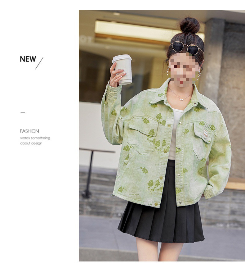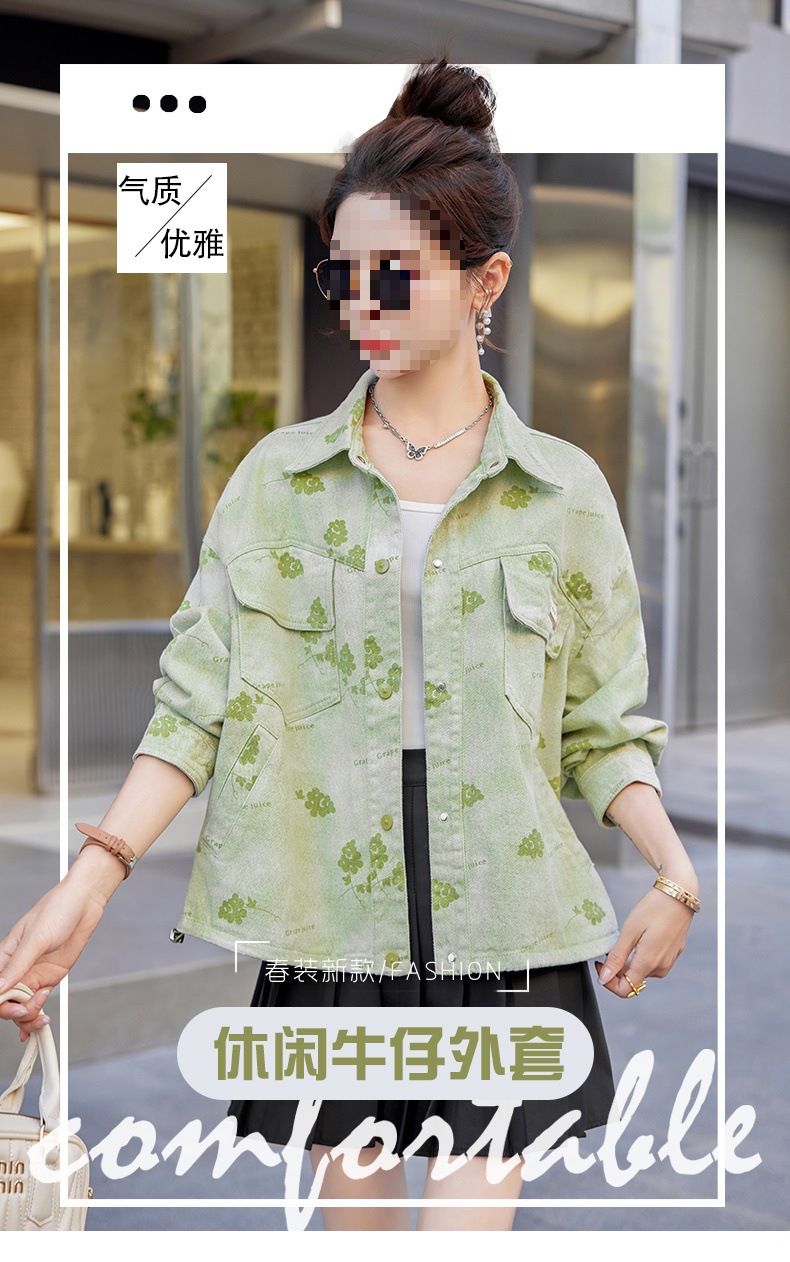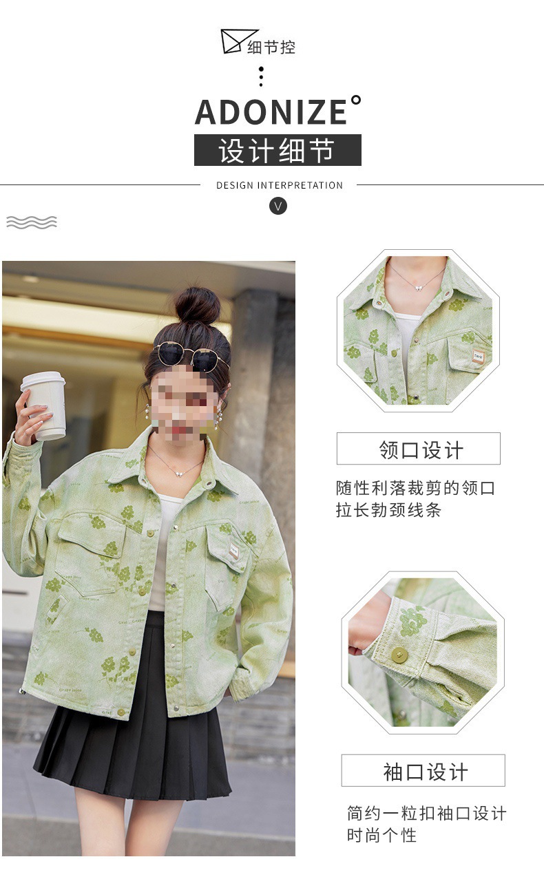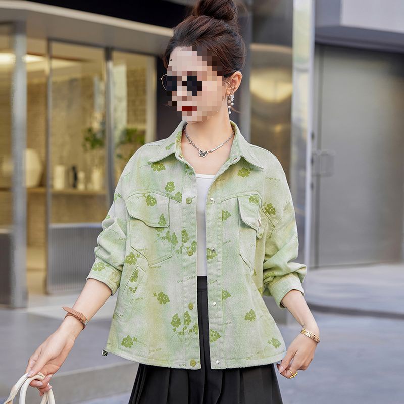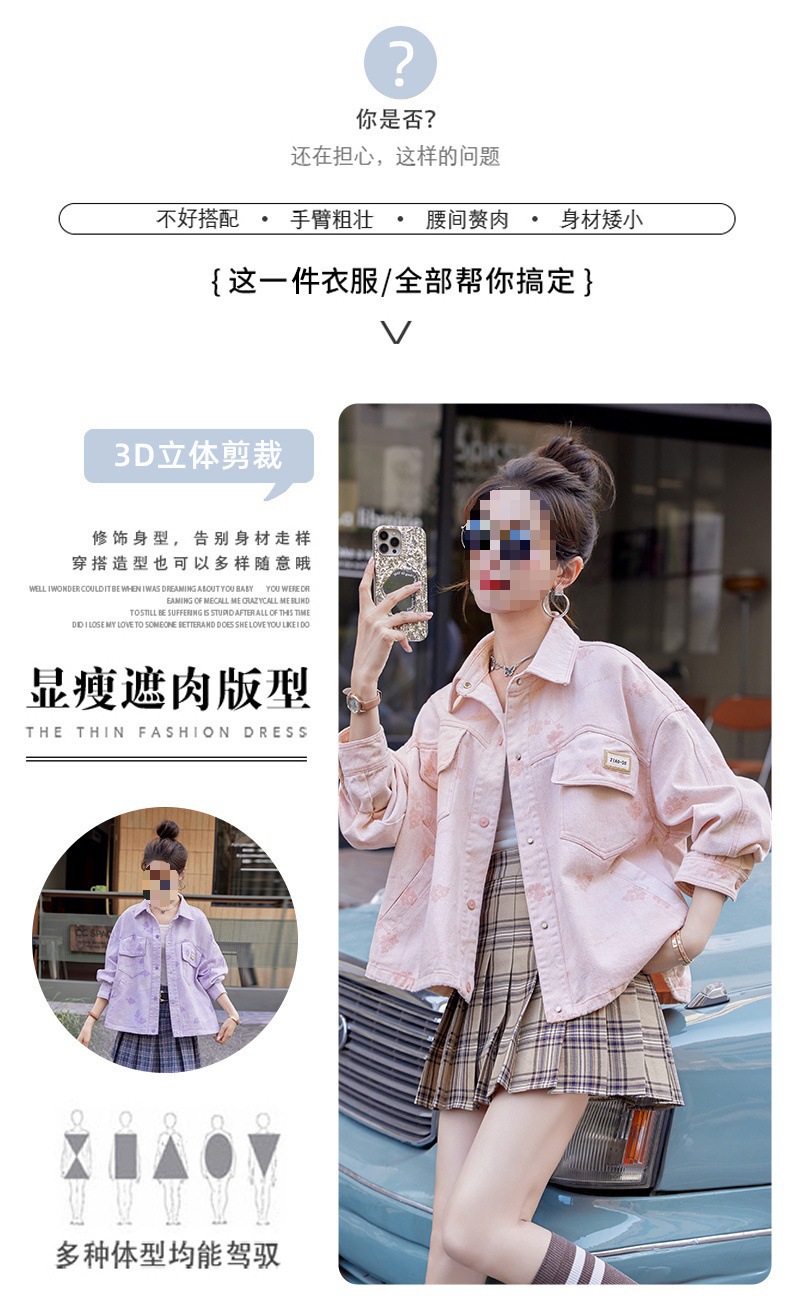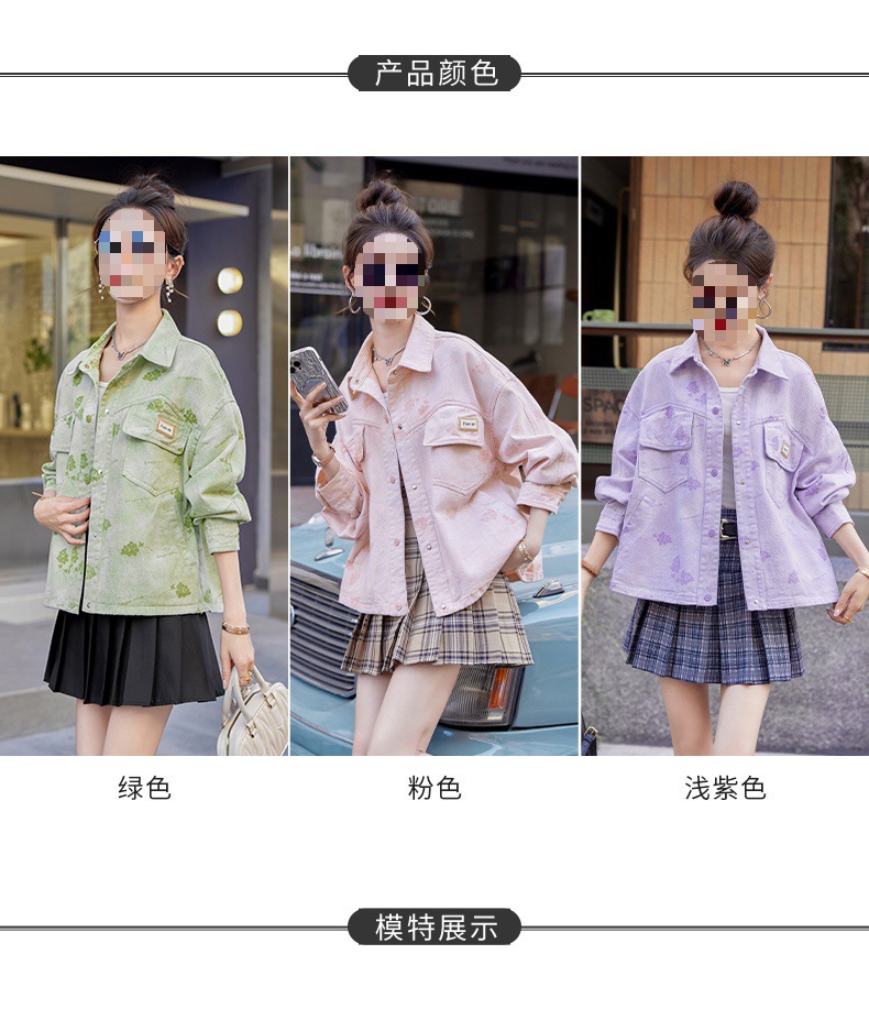 인쇄 된 핑크 데님 재킷 여성의 봄과 가을 2024 작은 캐주얼 용 새로운 하이 엔드 우아한 느슨한 재킷스토어 가기