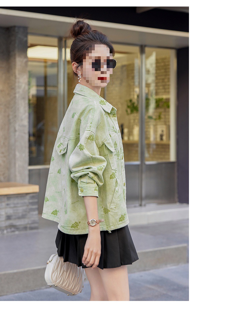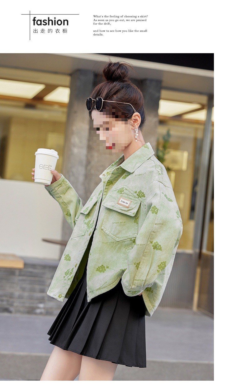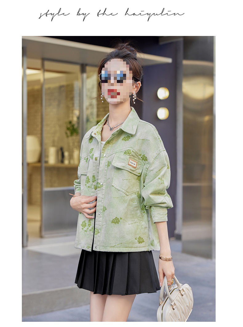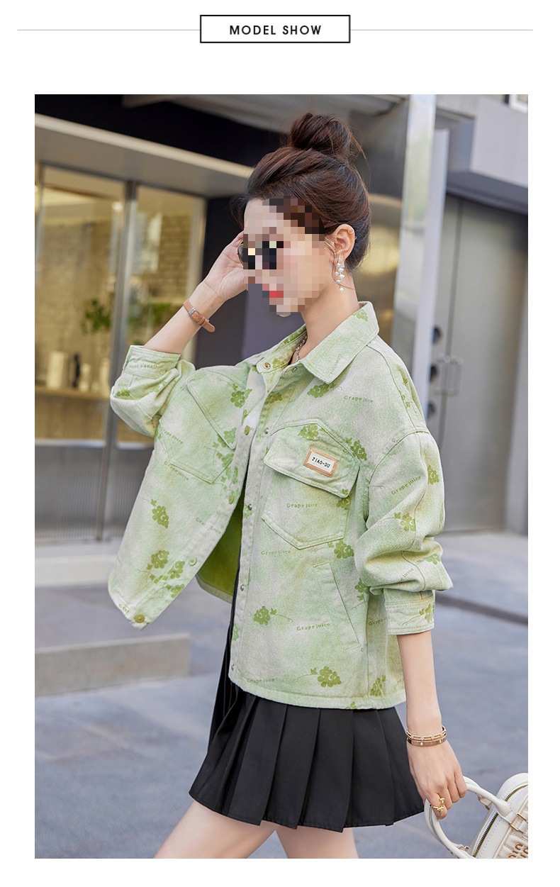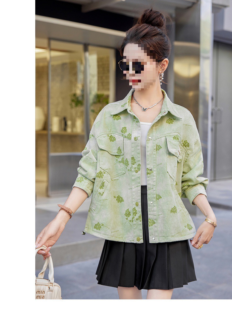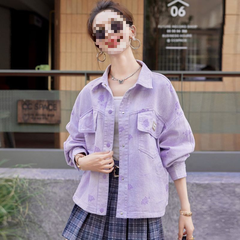 인쇄 된 핑크 데님 재킷 여성의 봄과 가을 2024 작은 캐주얼 용 새로운 하이 엔드 우아한 느슨한 재킷스토어 가기