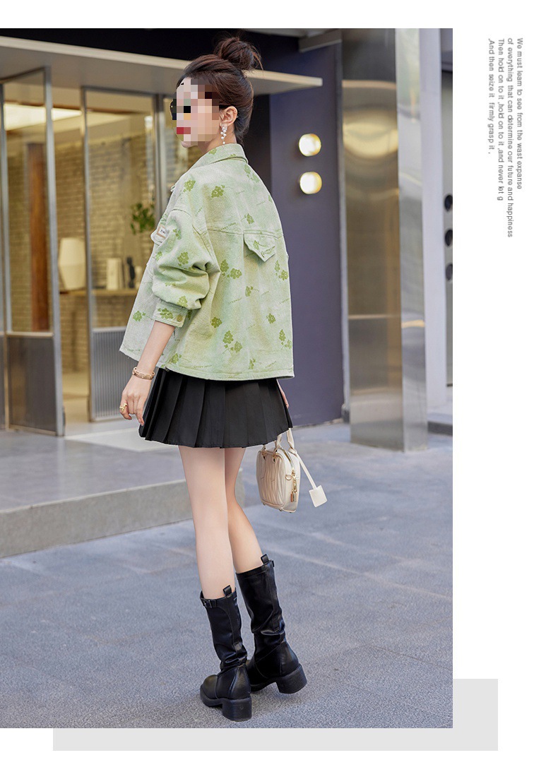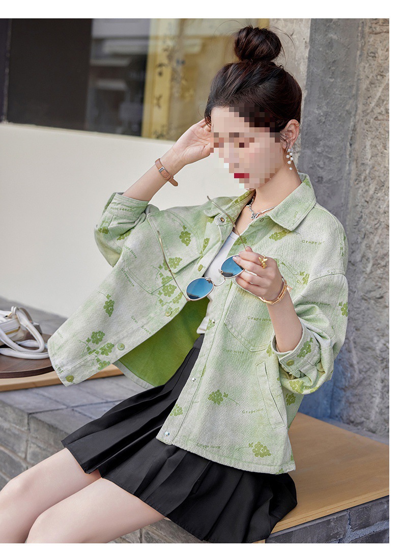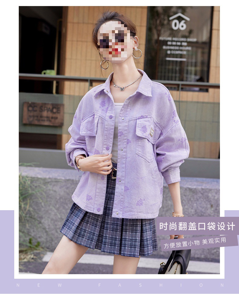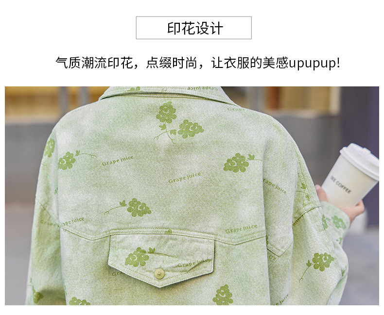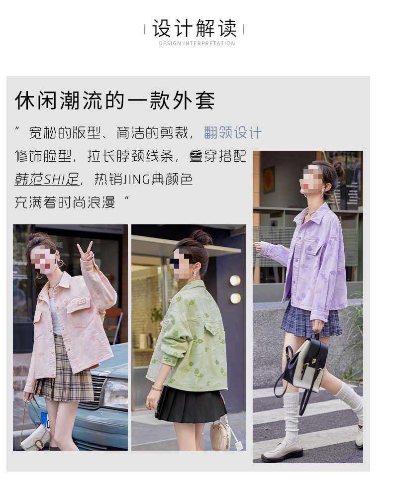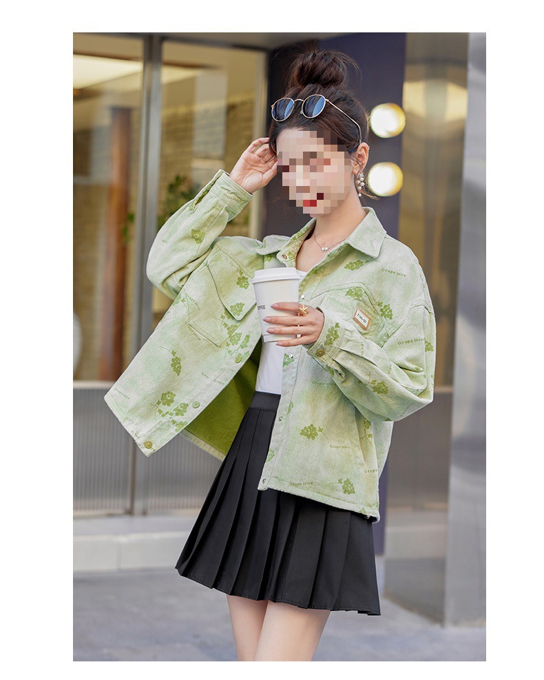 인쇄 된 핑크 데님 재킷 여성의 봄과 가을 2024 작은 캐주얼 용 새로운 하이 엔드 우아한 느슨한 재킷스토어 가기