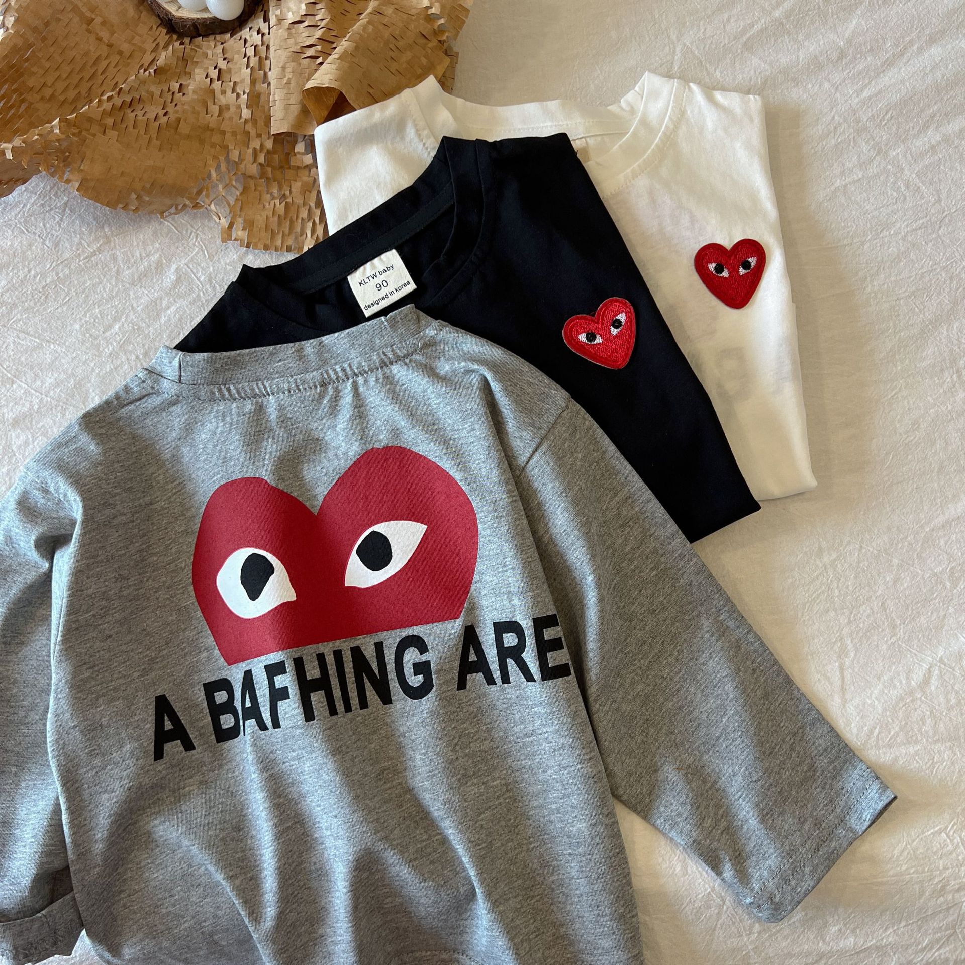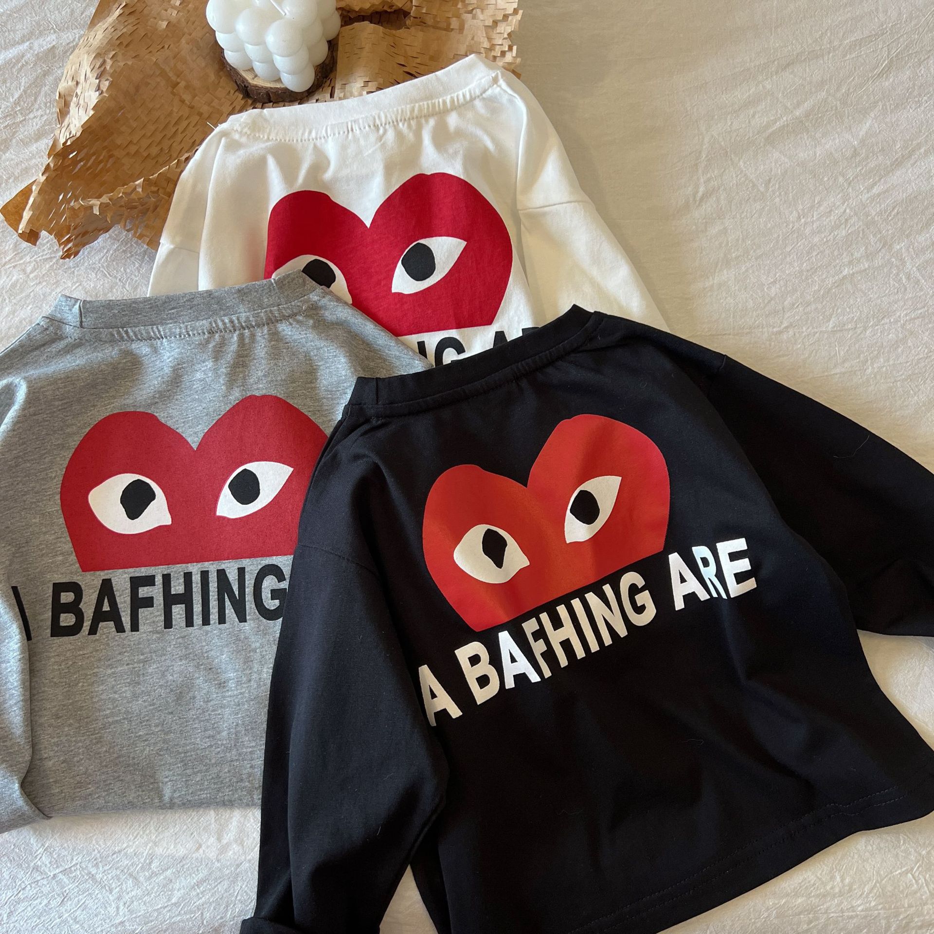 가을 2024 새로운 어린이 티셔츠 소년 긴 소매 터틀넥 셔츠 소녀 사랑 최고 아기 편지베이스 셔츠스토어 가기