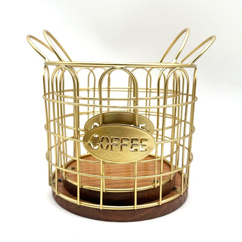 주방 거실 철 장식품 필름 및 TV 소품 장식품 도매 공장 직접 철 나무 커피 캡슐 보관 바구니스토어 가기