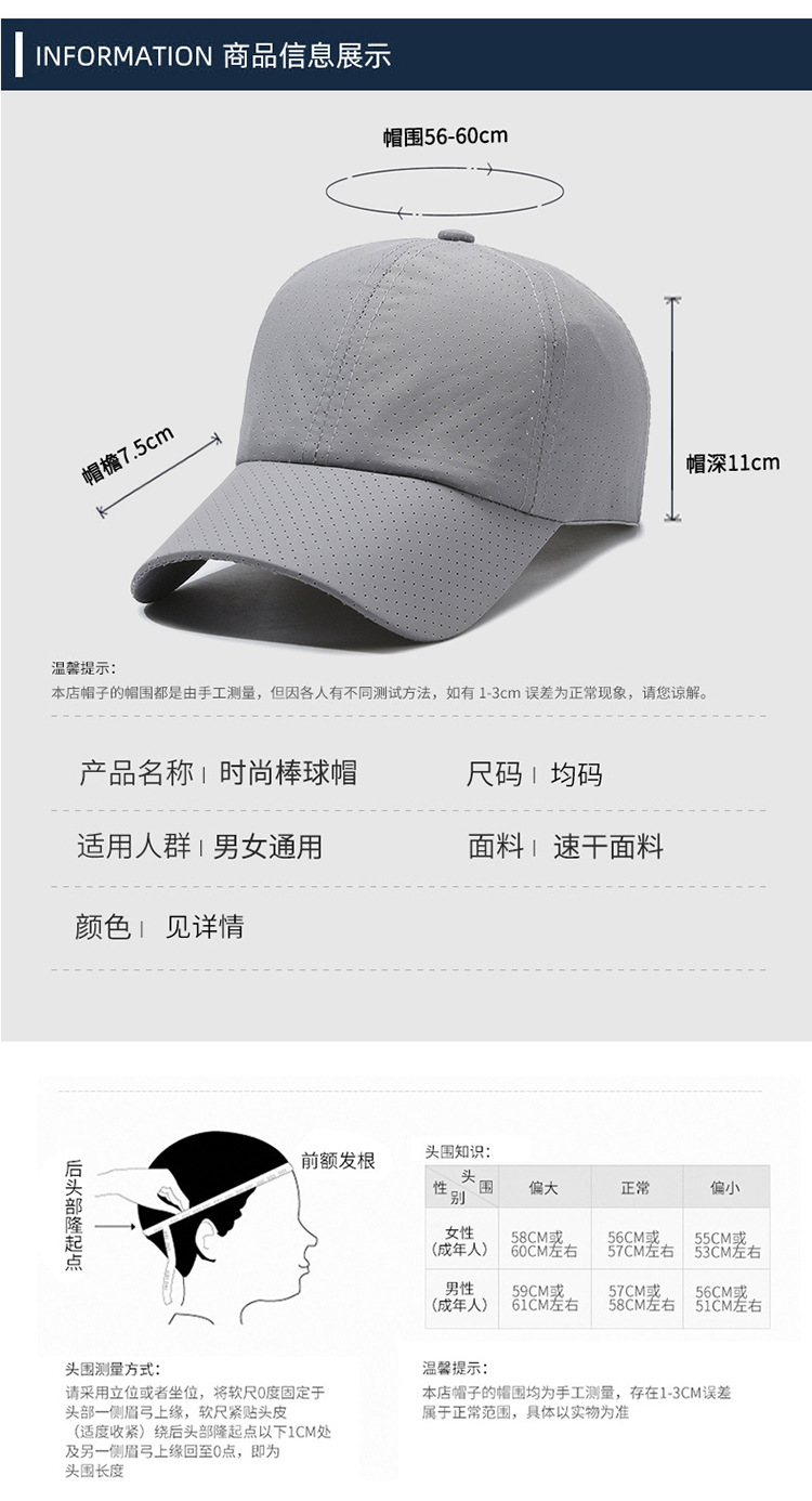 빠른 건조 모자 남자와 여자의 캐주얼 선스크린 모든 경기 야구 모자 야외 차양 여름 빠른 건조 통기성 모자스토어 가기