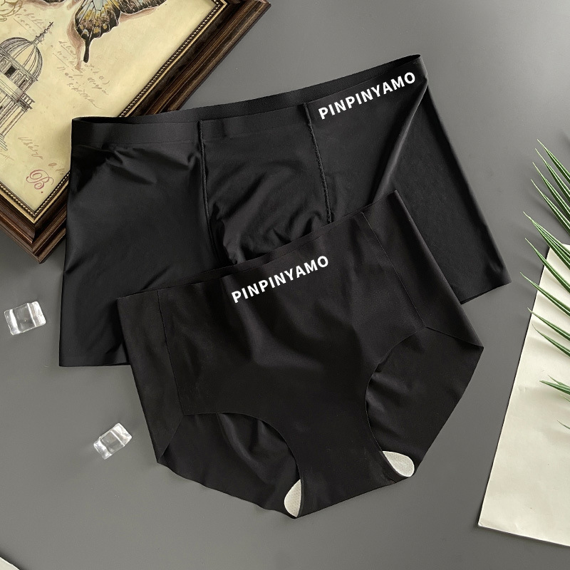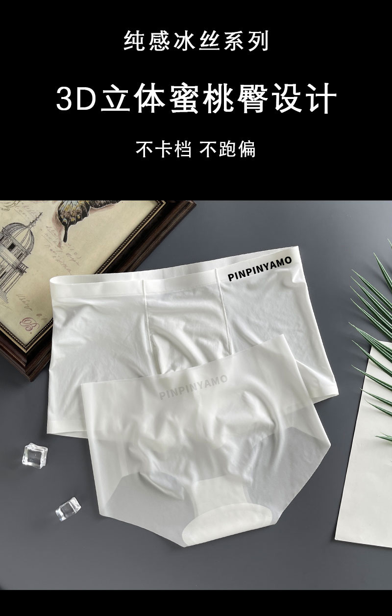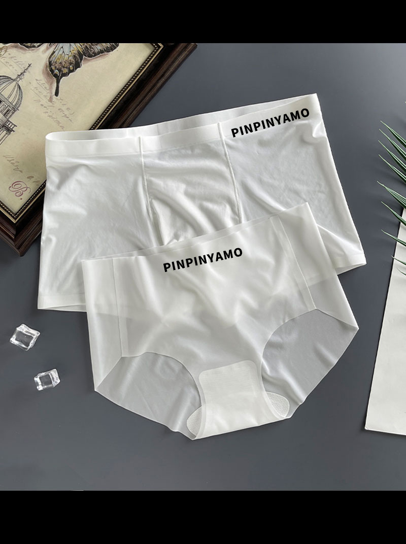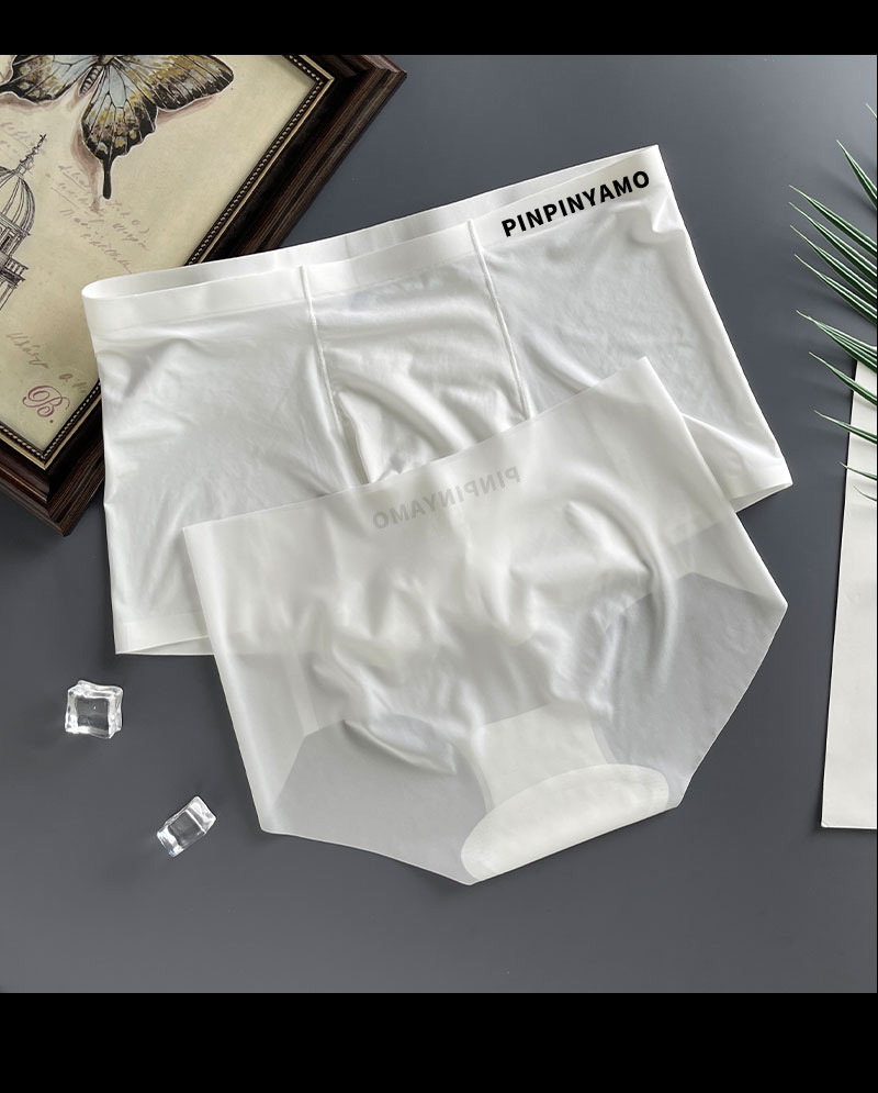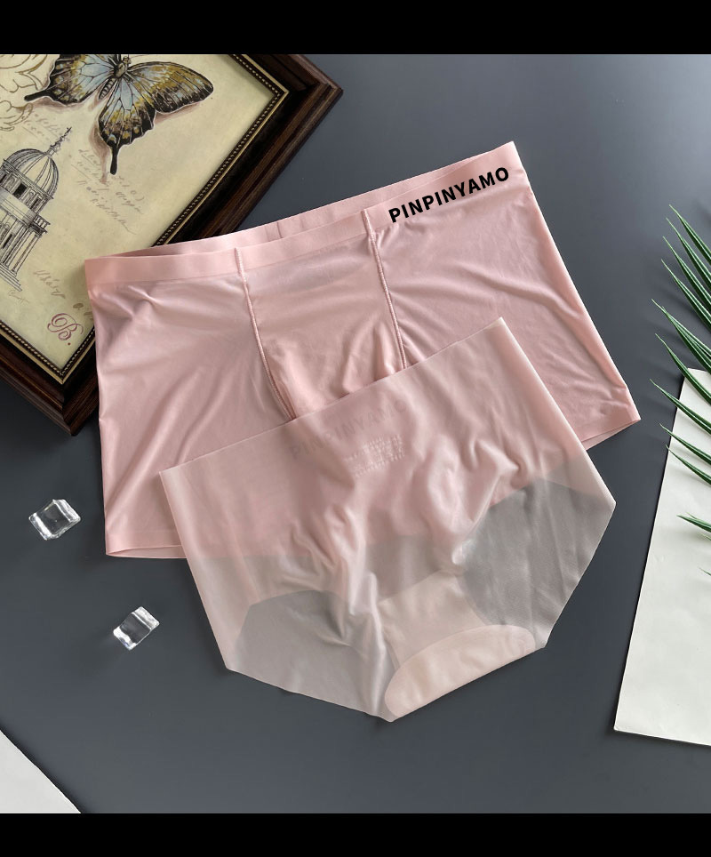 커플의 속옷 아이스 실크 초박형 투명 순수 욕망 한 남자와 한 여자 Traceless Girl's Briefs 남자 네 모서리 반바지 남자스토어 가기