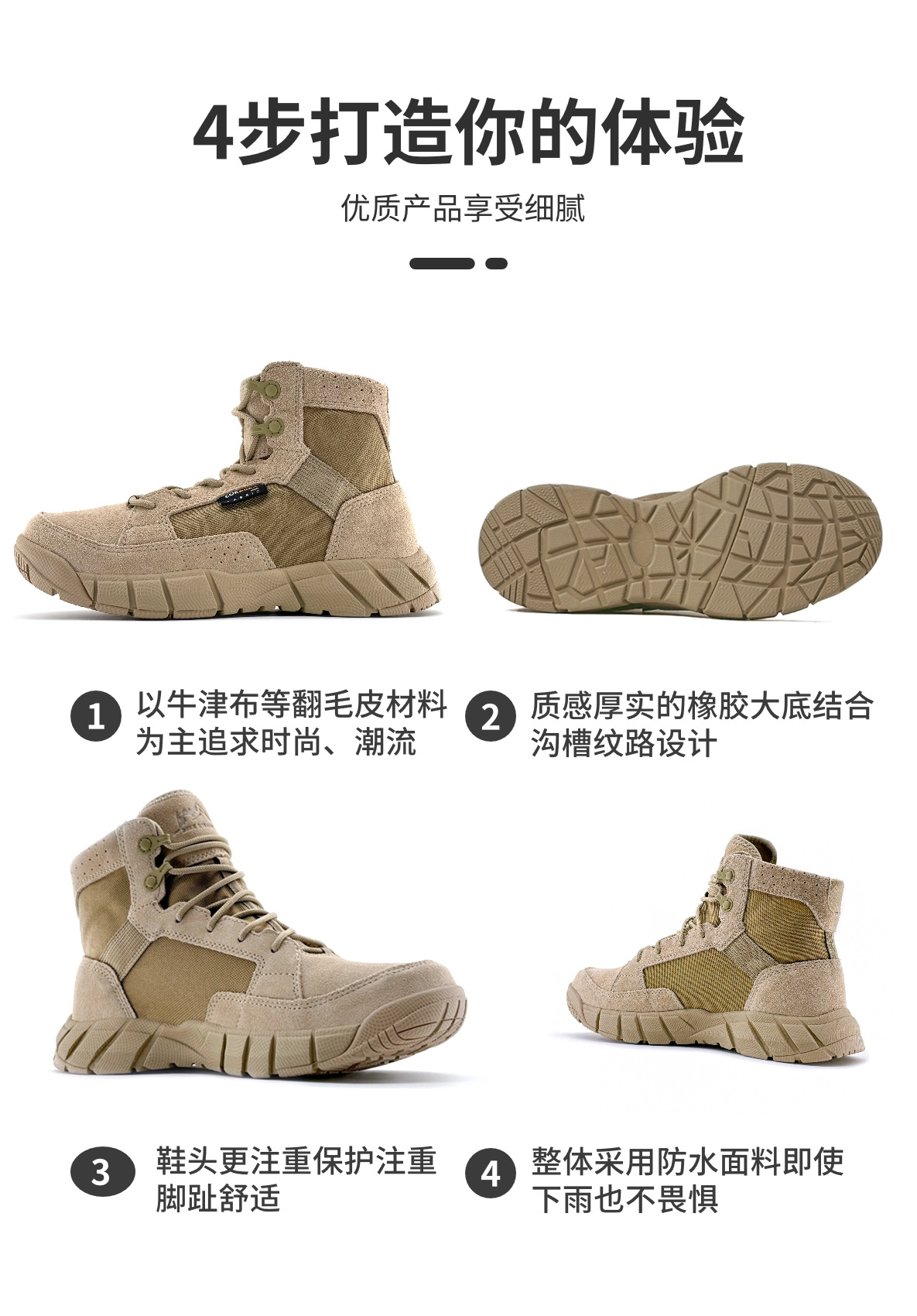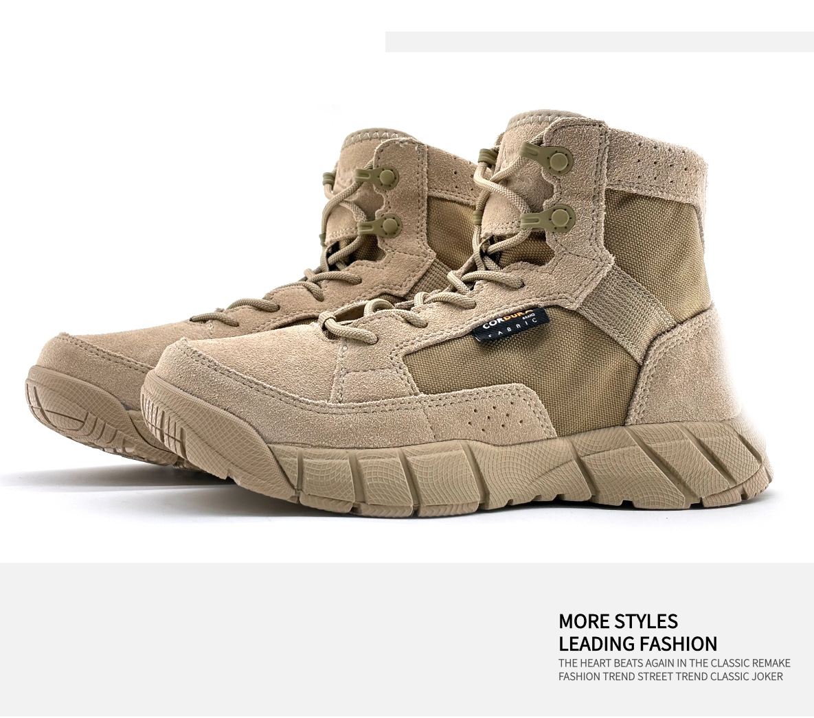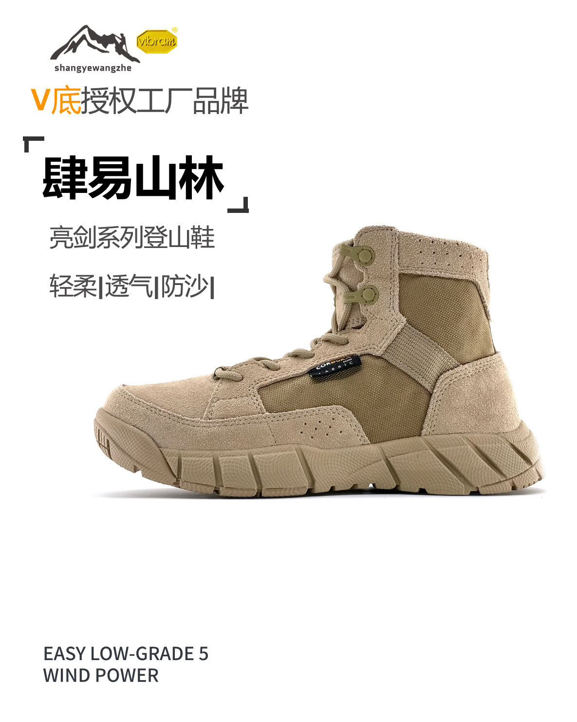 광저우 Fuxian 신발 공장 야외 전문 등산 및 하이킹 신발 남성과 여성을 위한 미드탑 미끄럼 방지 및 내마모성 사막 전투 부츠스토어 가기