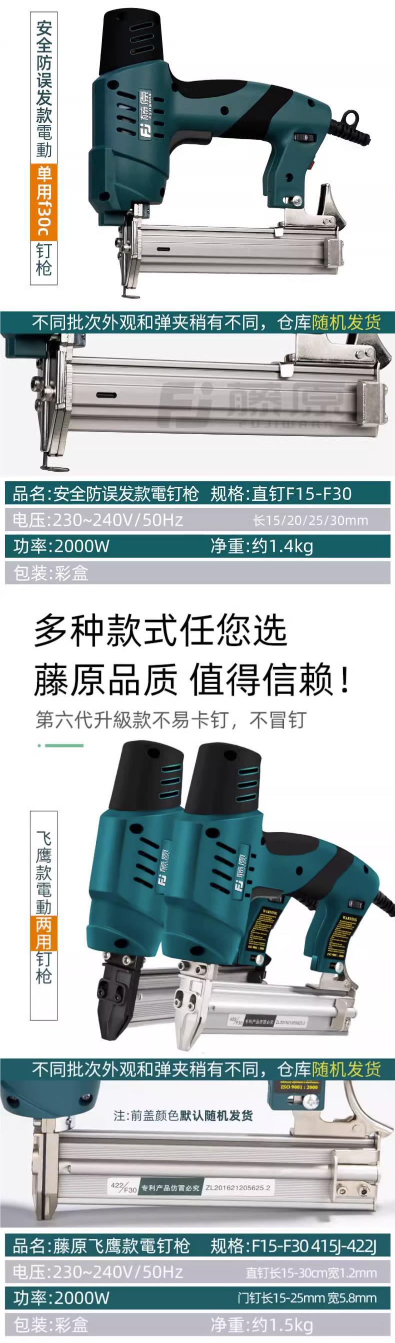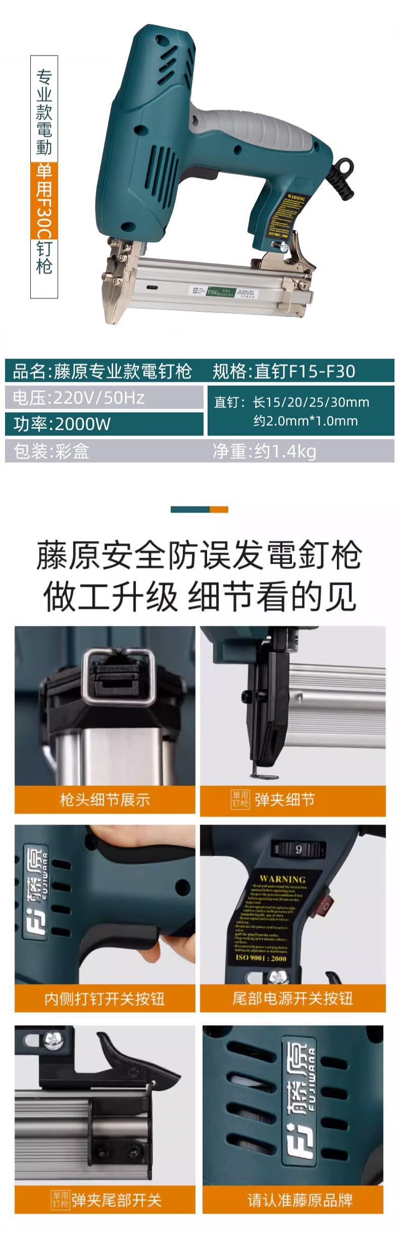 후지와라 f30 에어 네일 건 목공 특수 전기 스트레이트 네일 건 전기 네일 건 전기 네일 건
