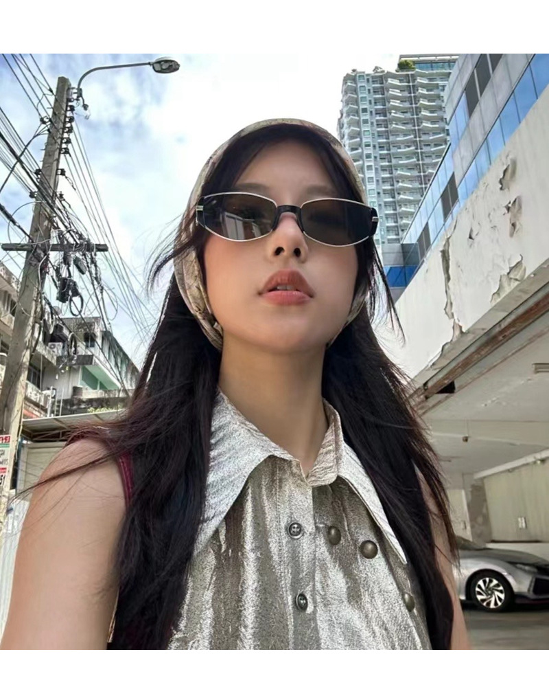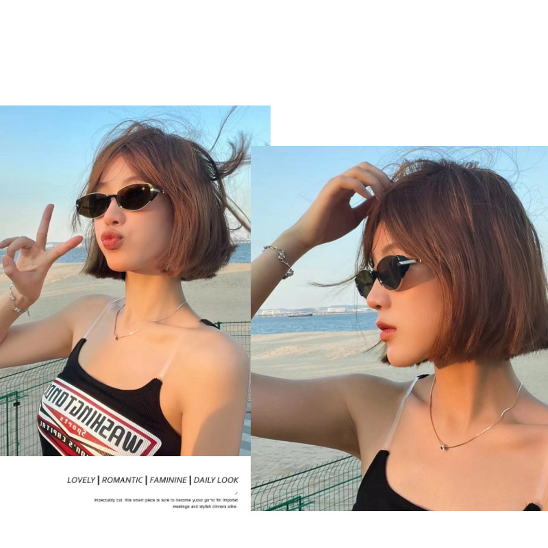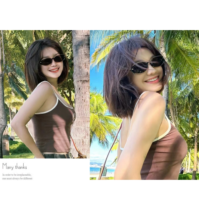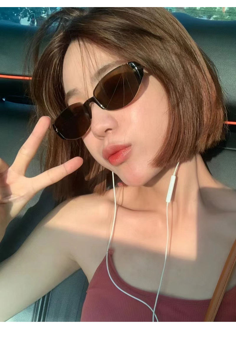 2025 새로운 현대 복고풍 하이 엔드 갈색 좁은 프레임 작은 갈색 거울 여성 사각형 및 둥근 얼굴 슬리밍 고양이 눈 선글라스 선글라스스토어 가기