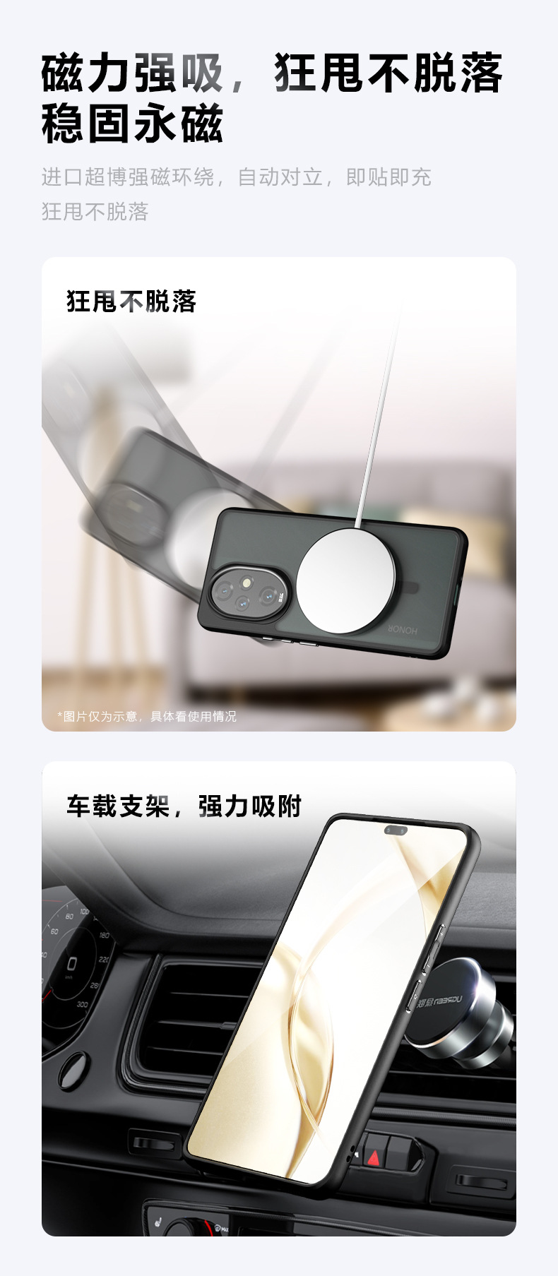 适用荣耀400lite磁吸手机壳奇甲气囊防摔商务磨砂荣耀200手机壳 荣耀Power手机壳 荣耀链接 Honor X9d手机壳荣耀X9d手机壳