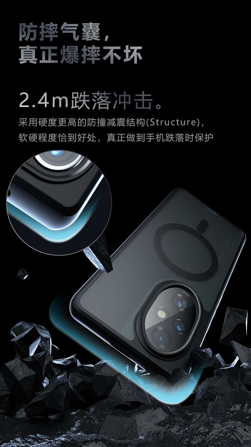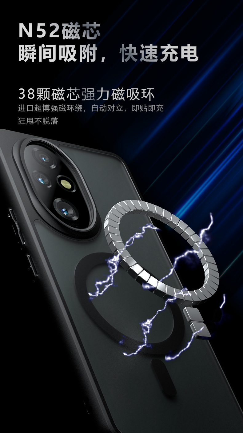 适用荣耀200手机壳磁吸手机壳奇甲气囊防摔商务磨砂荣耀200lite 荣耀400lite手机壳 华为P80U手机壳 荣耀X70手机壳 荣耀400smart手机壳