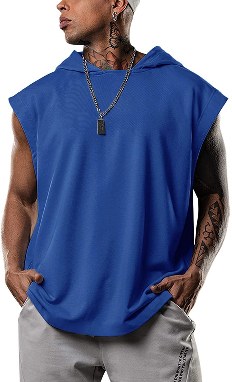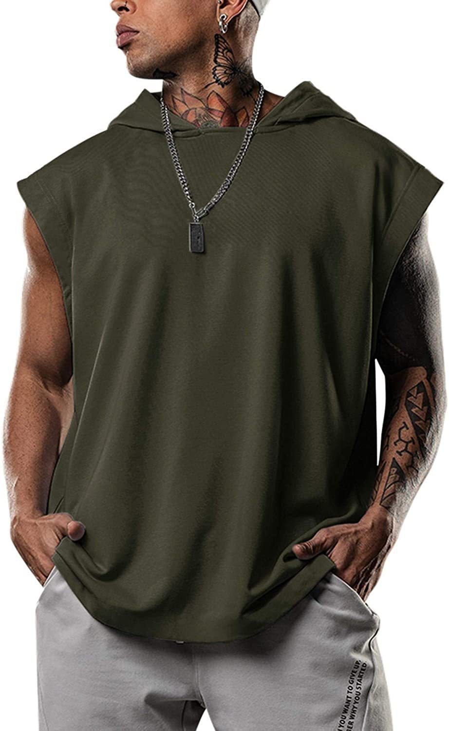 아마존 2023 새로운 남성 피트니스 풀오버 스포츠 레저 유럽과 미국 민소매 남성 후드 조끼 느슨한 반팔