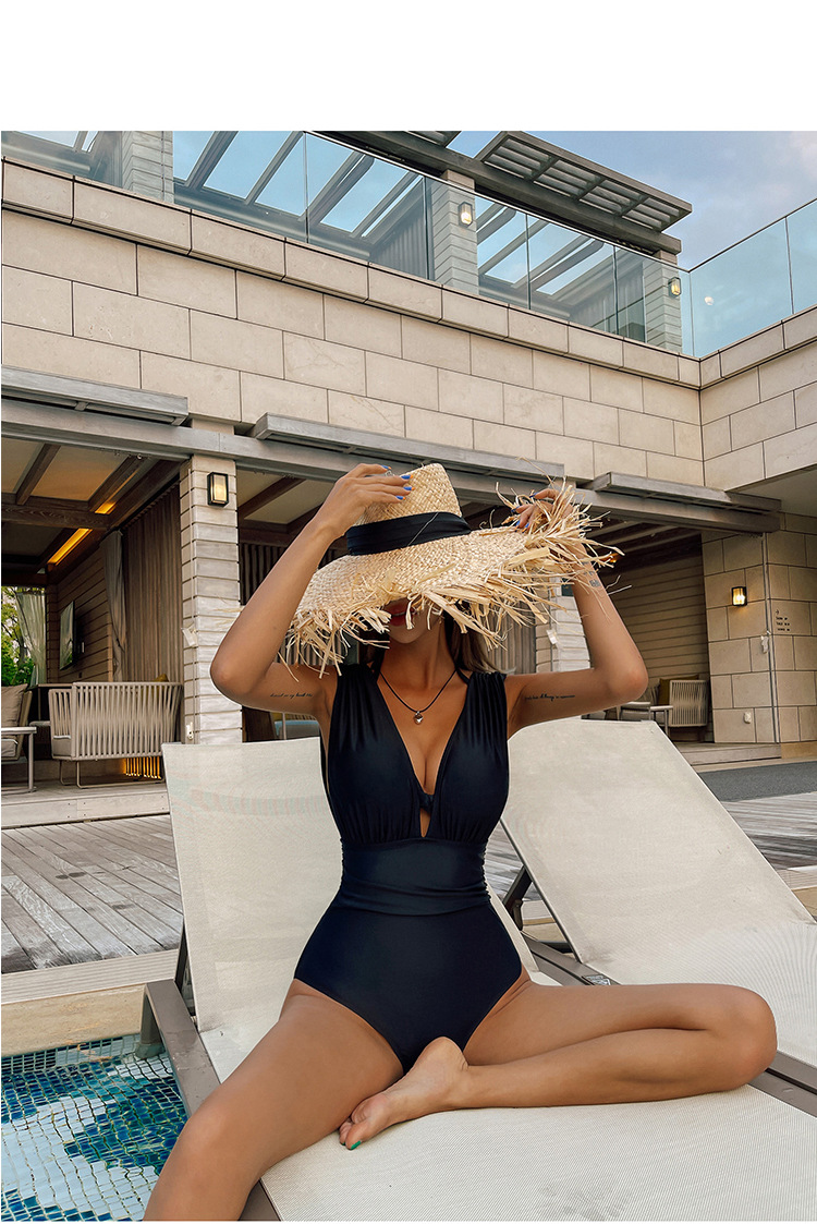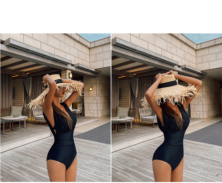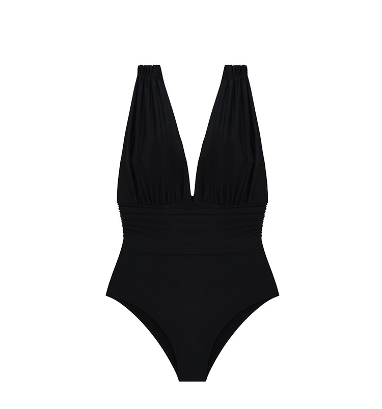 유럽과 미국으로의 대외 무역 수출 강철 지원 크기 가슴이 달린 검은 색 2 피스 깊은 V 배꼽으로 덮인 슬림 원피스 수영복을 모았습니다.스토어 가기