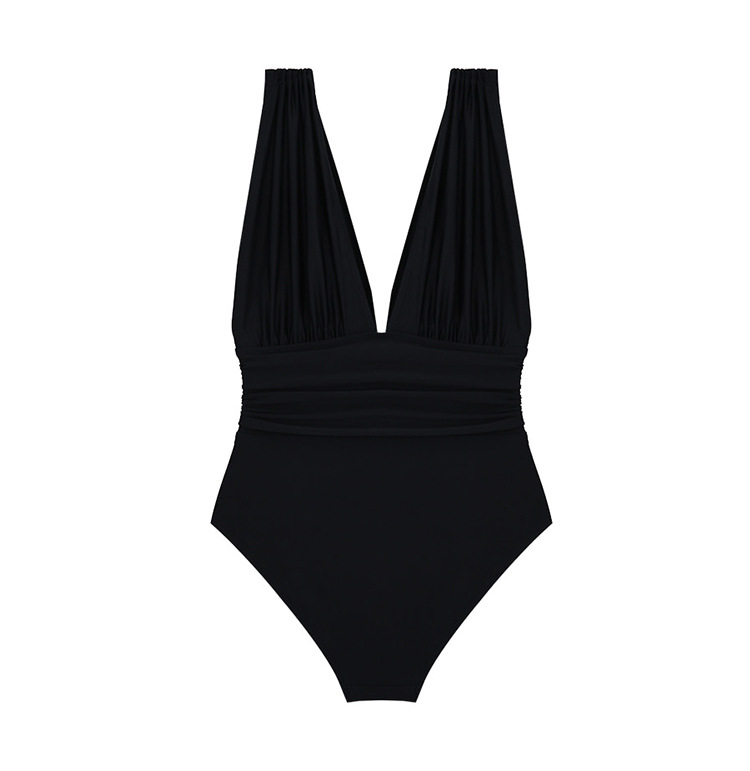 유럽과 미국으로의 대외 무역 수출 강철 지원 크기 가슴이 달린 검은 색 2 피스 깊은 V 배꼽으로 덮인 슬림 원피스 수영복을 모았습니다.