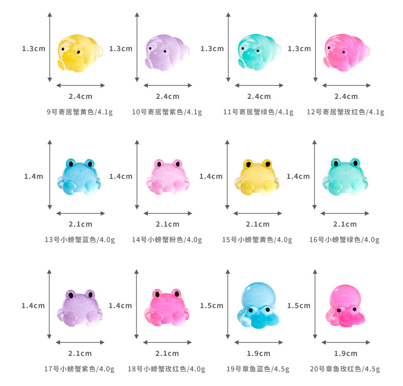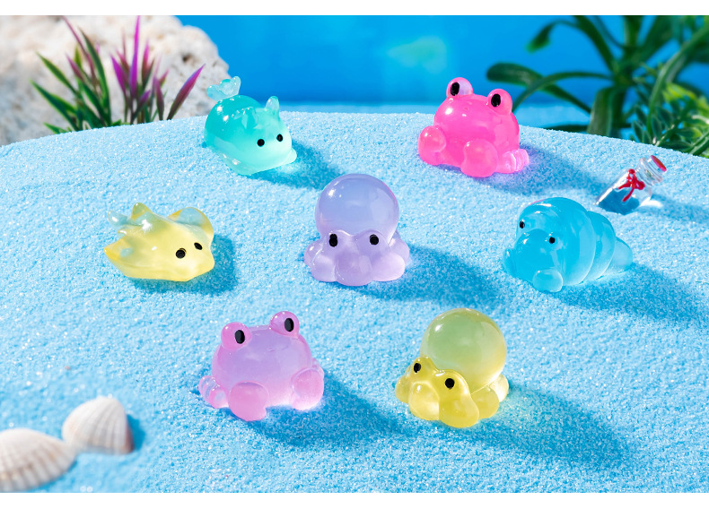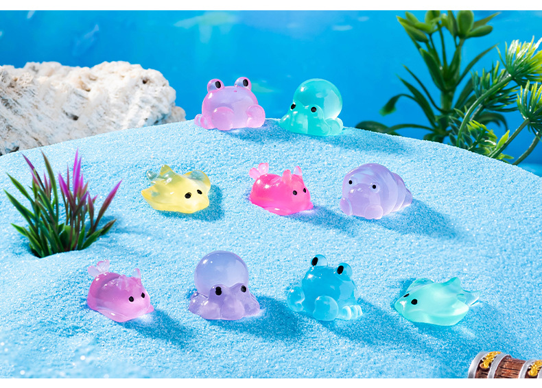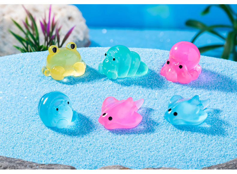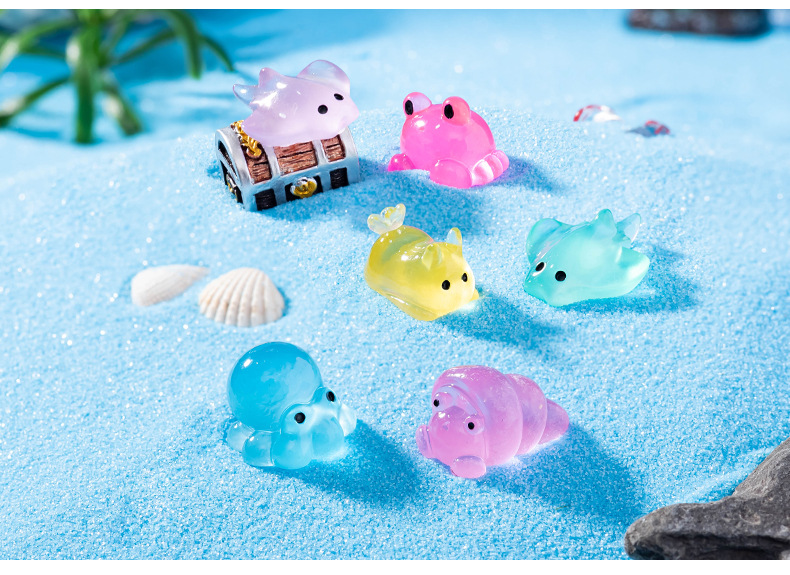 마이크로 풍경 해양 동물 장식품 빛나는 문어 게 악마 물고기 소라게 바다 슬러그 수족관 장식품