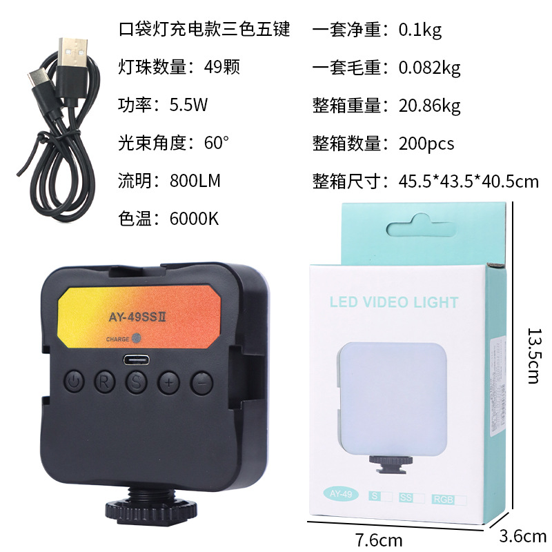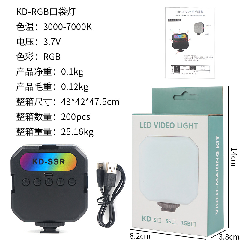 포켓 라이트 스퀘어 필 라이트 미니 휴대용 채우기 라이트 셀카 사진 rgb 실내 조명 led 분위기 핸드 헬드스토어 가기