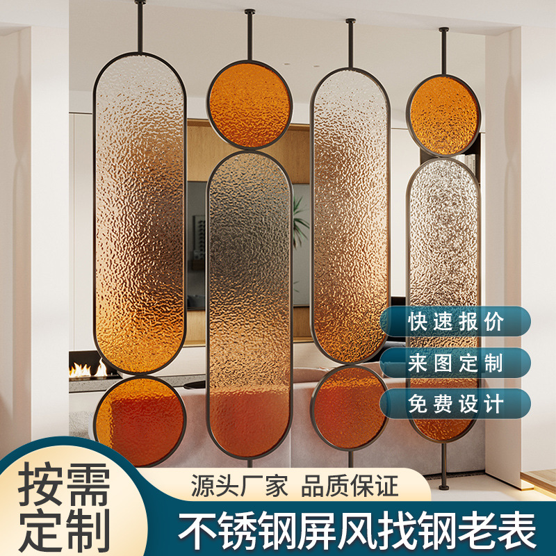 가벼운 고급 스테인레스 스틸 Changhong 유리 스크린 거실 입구 파티션 레스토랑 장식 금속 차단 벽 제조 업체