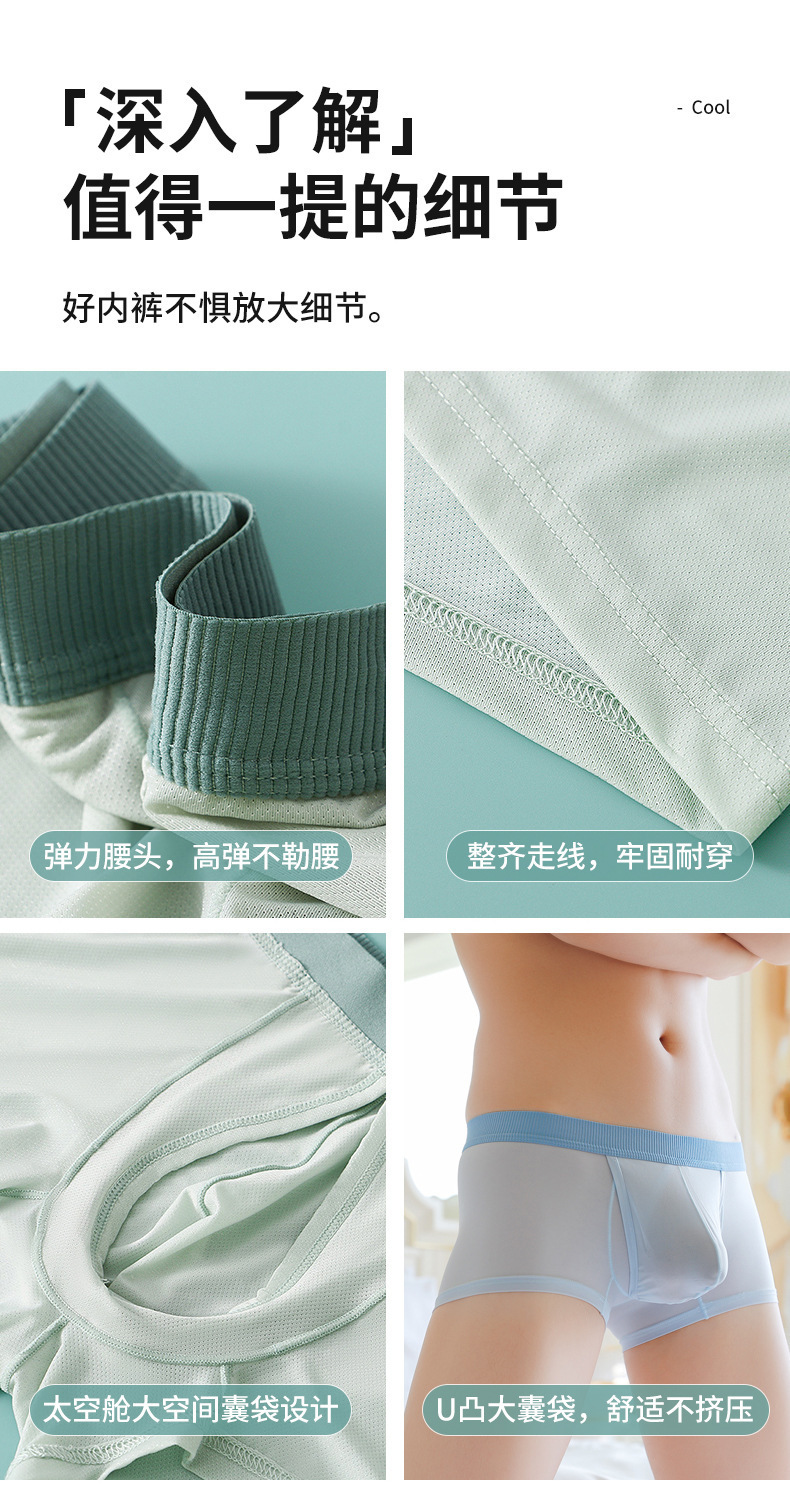 남성 속옷 여름 얼음 실크 측면 개방형 복서 팬티 초박형 통기성 공간 창고 분리형 Zhongshan 속옷 남성용스토어 가기