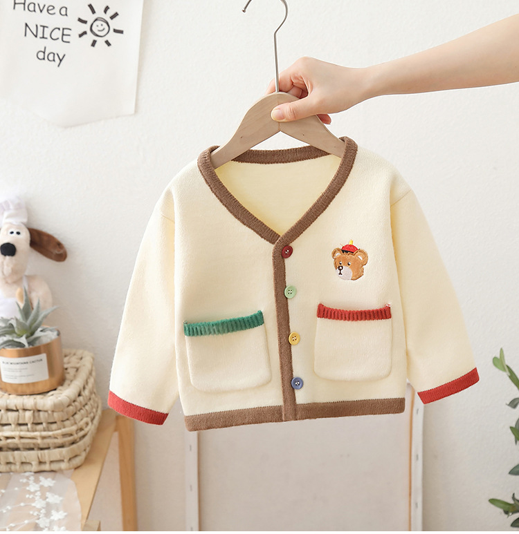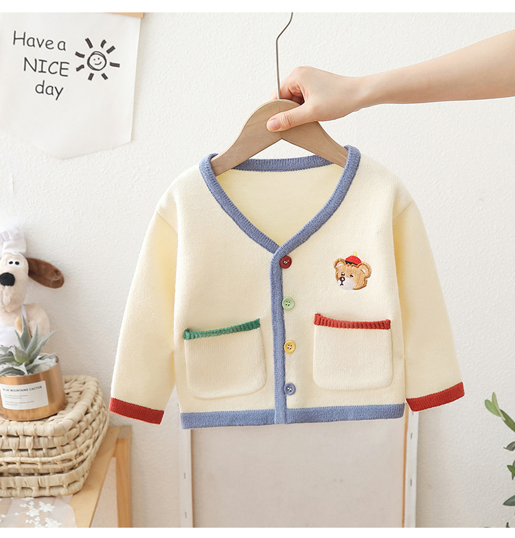 2024 년 새로운 어린이 스웨터 카디건 서양식 어린이 봄 의류 소년 니트 코트 얇은 V 칼라스토어 가기