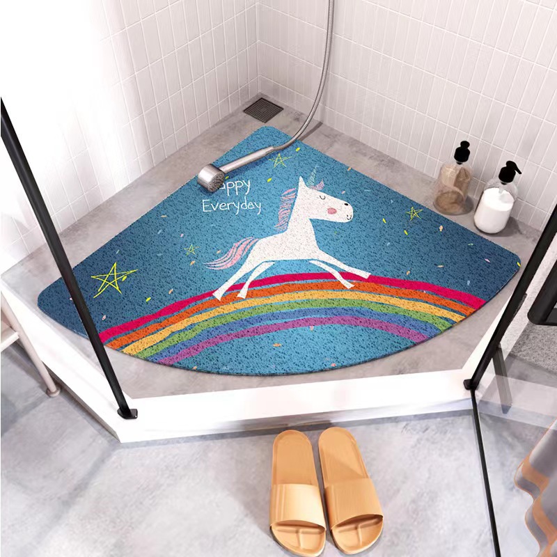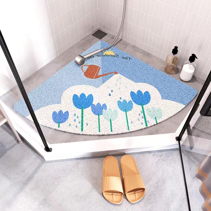 국경 간 가정용 욕실 미끄럼 방지 바닥 매트 작은 아파트 욕실 어린이 낙하 방지 팬 모양의 실크 링 바닥 매트