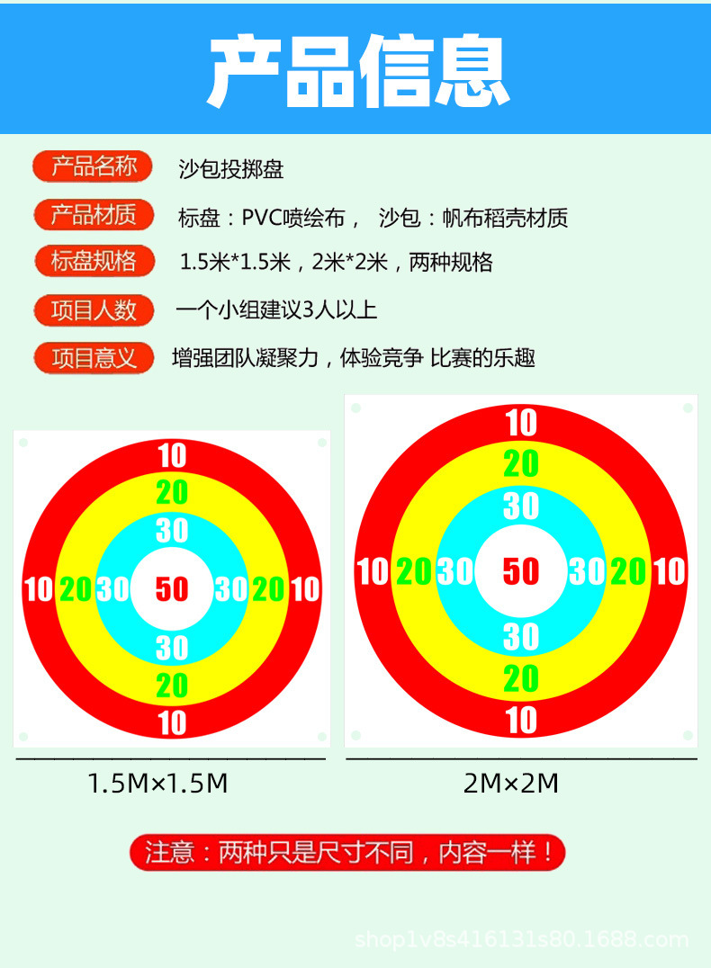 • 두꺼운 버전(1.5m*1.5m 정사각형 타겟 플레이트 + 모래주머니 10개)