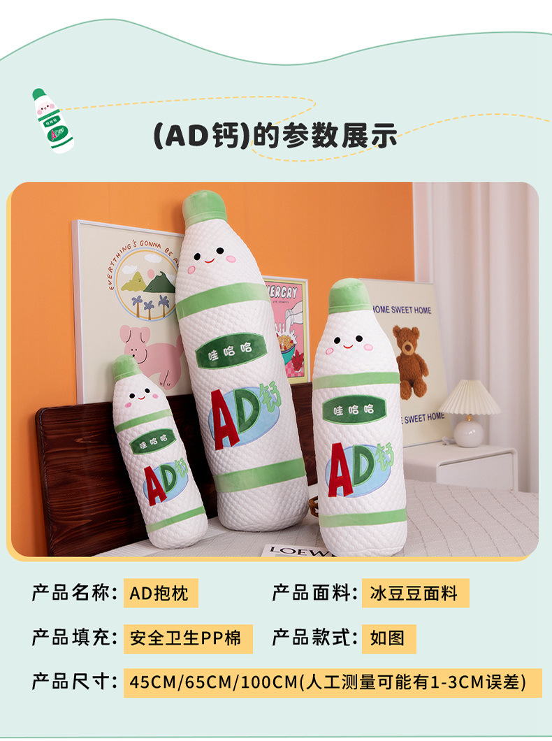 시뮬레이션 와하하 AD 칼슘 우유 긴 베개 봉제 장난감 잠자는 인형 음료 베개 아이스 빈 아이스 실크 베개 의식스토어 가기