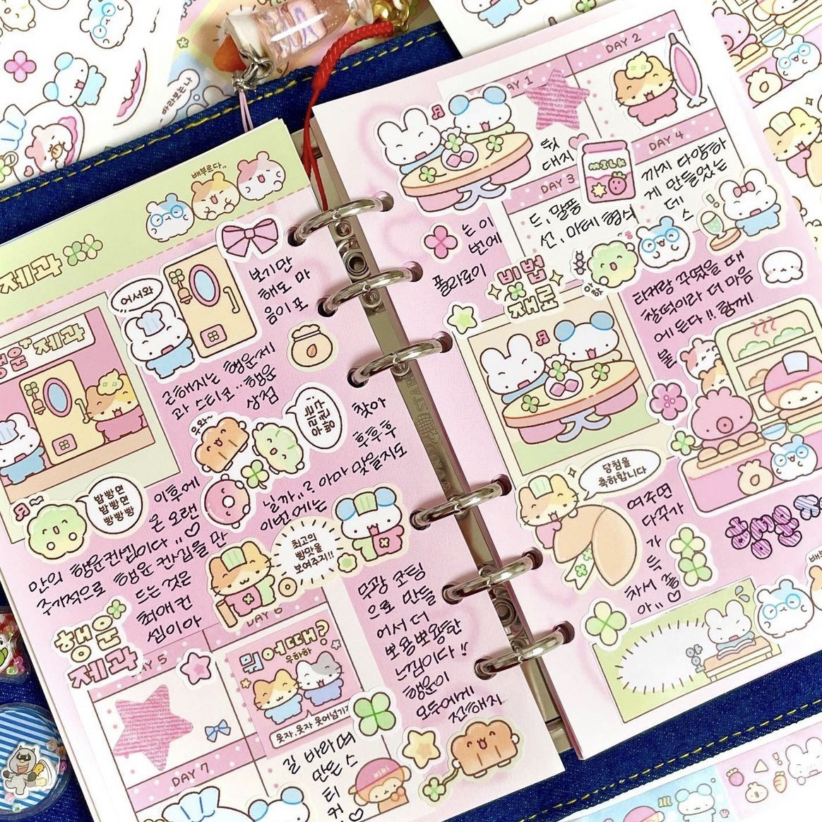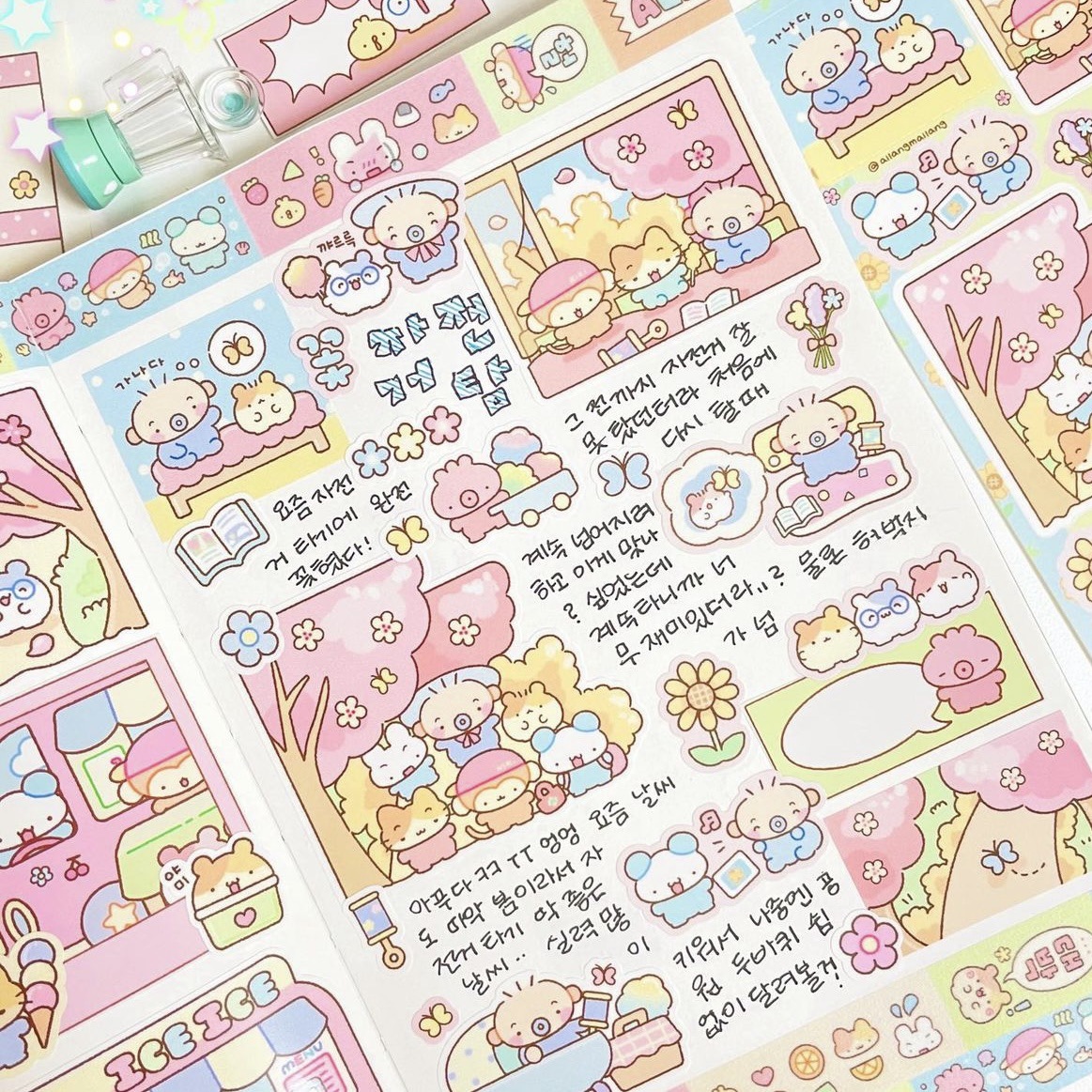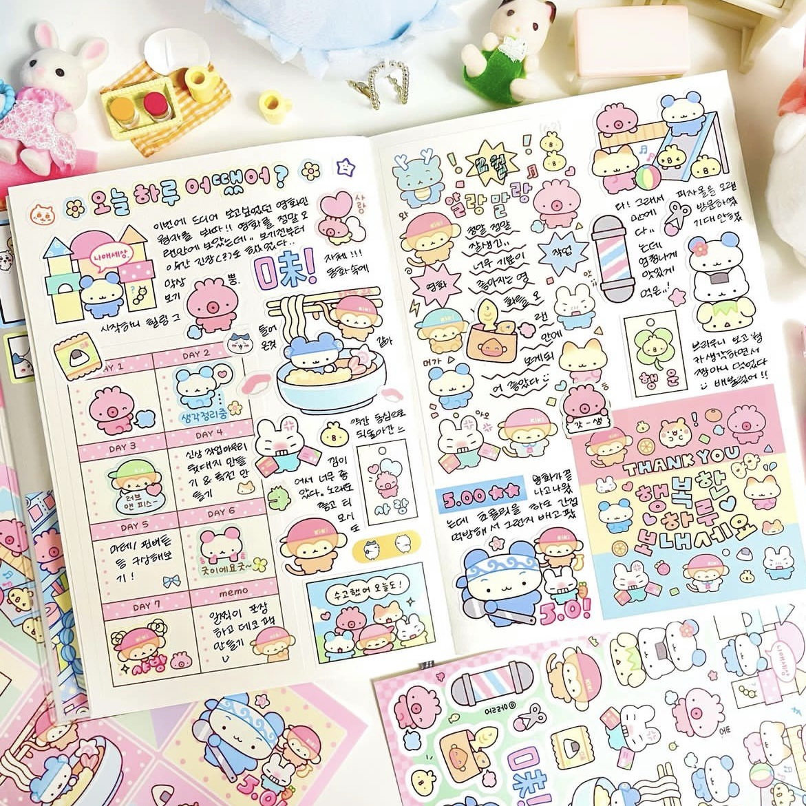 한국 폭발 귀여운 봄 투어 시리즈 만화 동물 손 계정 스티커 Ins Korean Goo Card Diy 크리에이티브 스티커