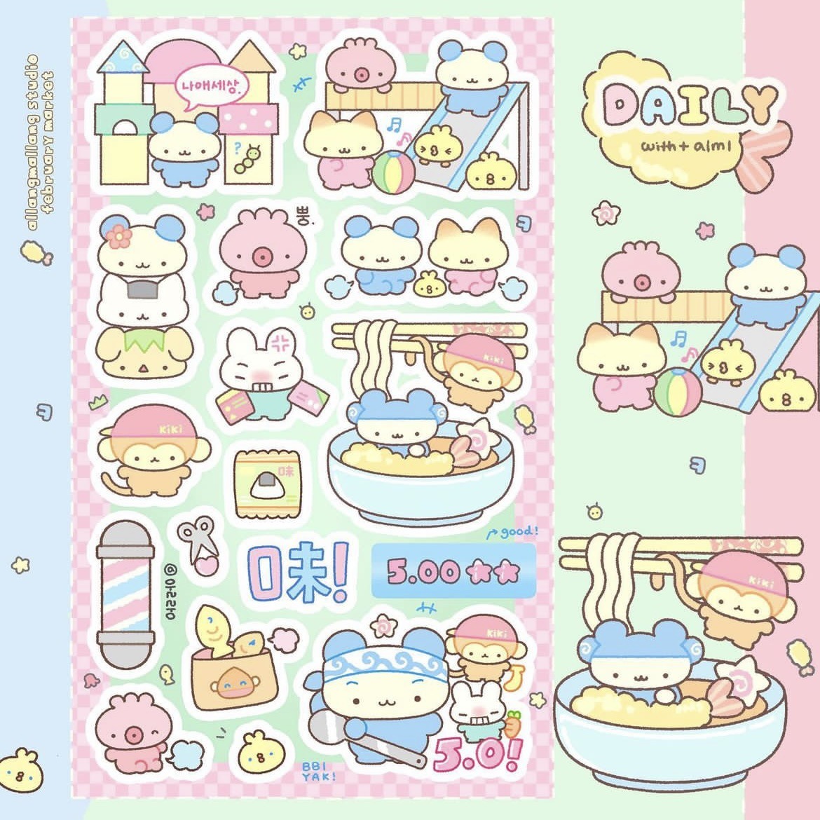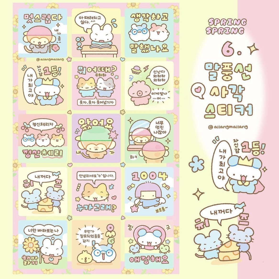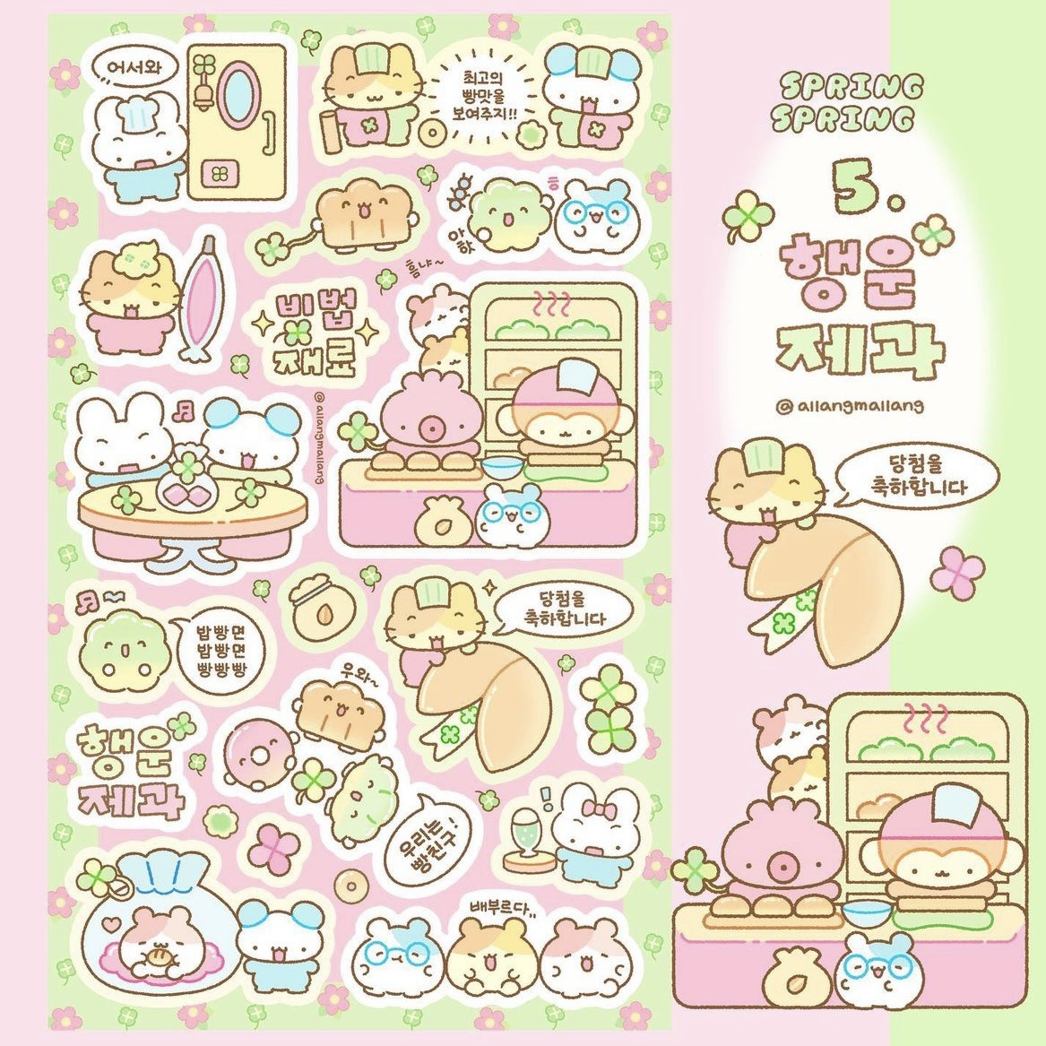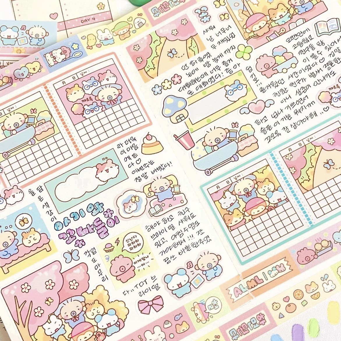한국 폭발 귀여운 봄 투어 시리즈 만화 동물 손 계정 스티커 Ins Korean Goo Card Diy 크리에이티브 스티커