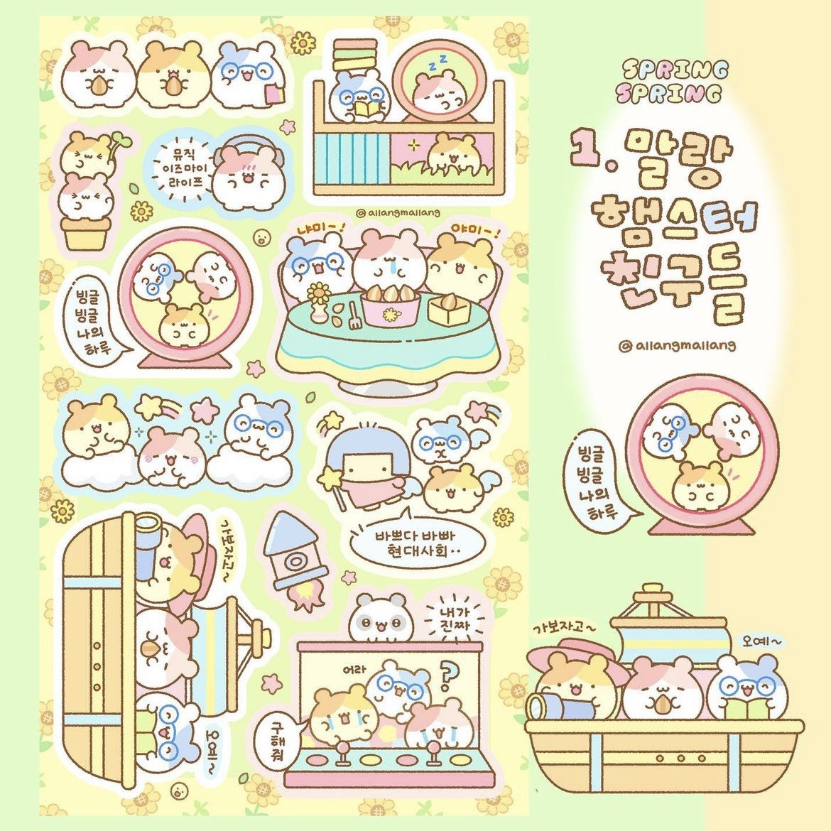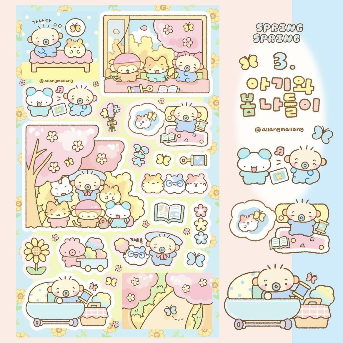 한국 폭발 귀여운 봄 투어 시리즈 만화 동물 손 계정 스티커 Ins Korean Goo Card Diy 크리에이티브 스티커스토어 가기
