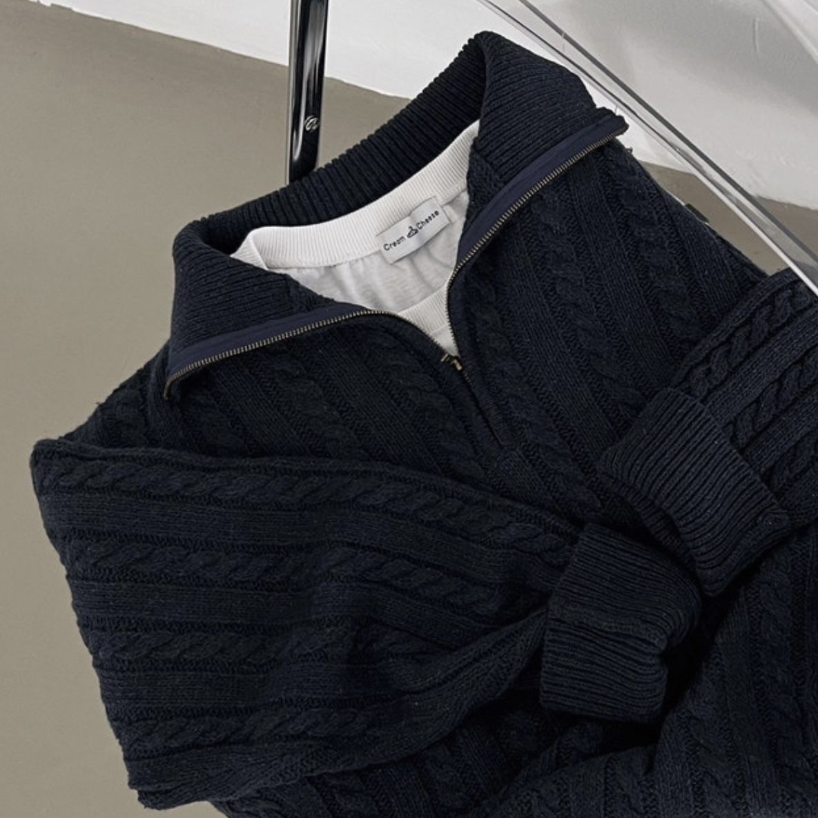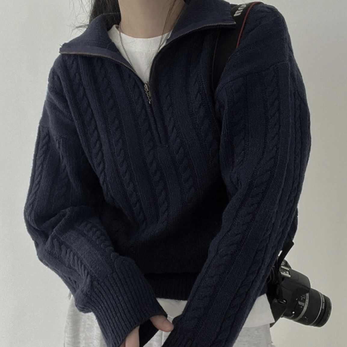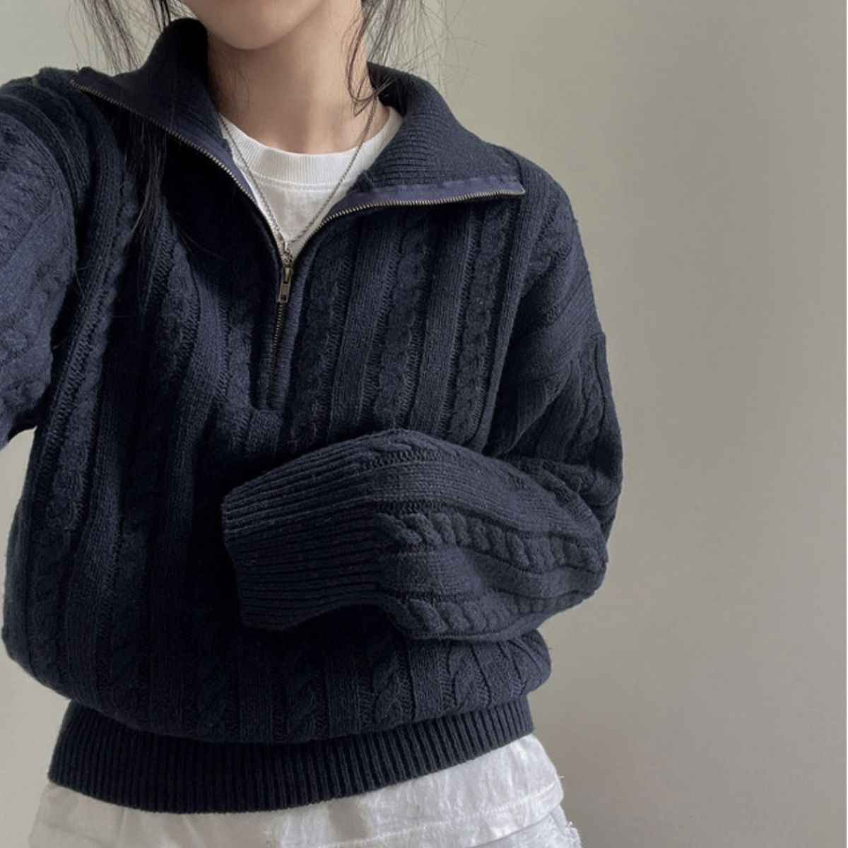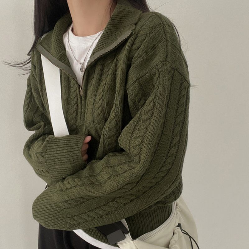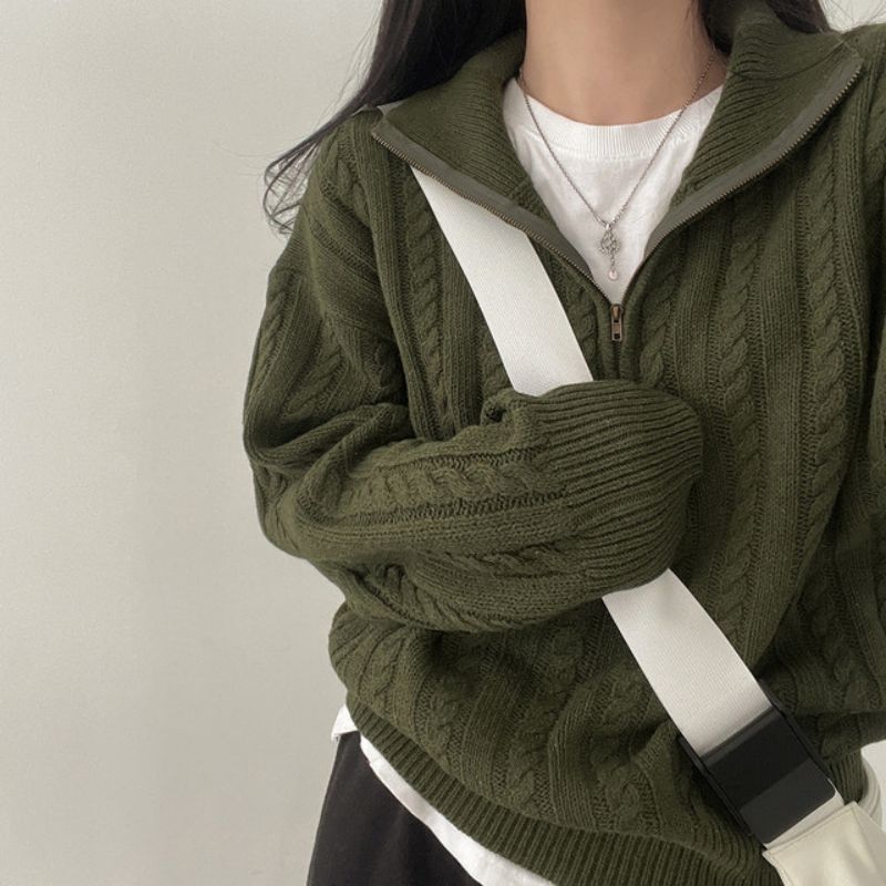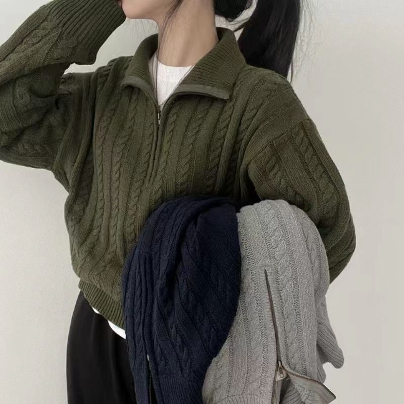 한국 세련된 가을과 겨울 두꺼운 니트 탑 여자 레트로 트위스트 하프 지퍼 게으른 올 매치 쇼트 스웨터 재킷
