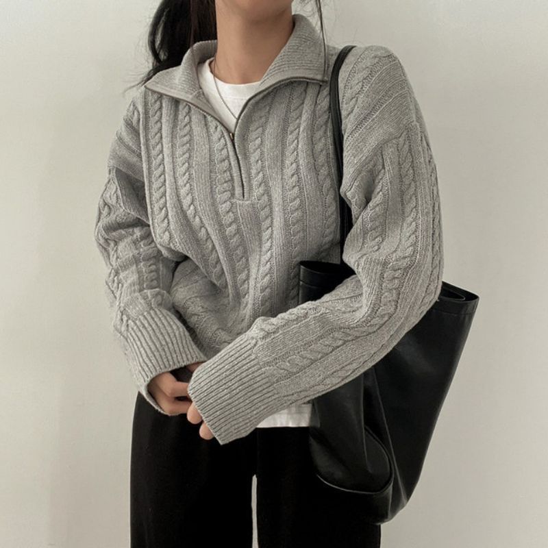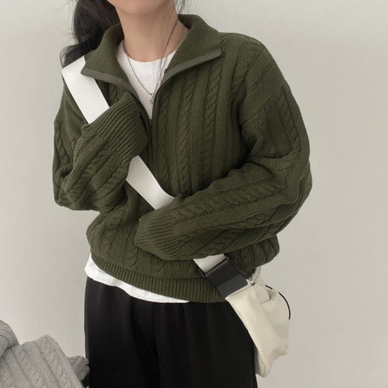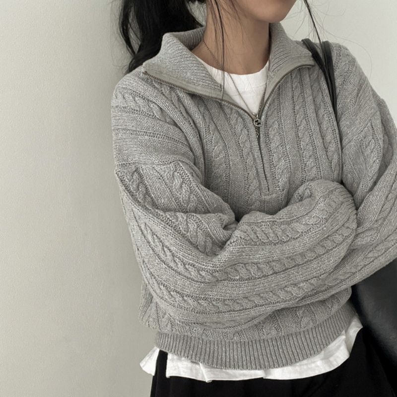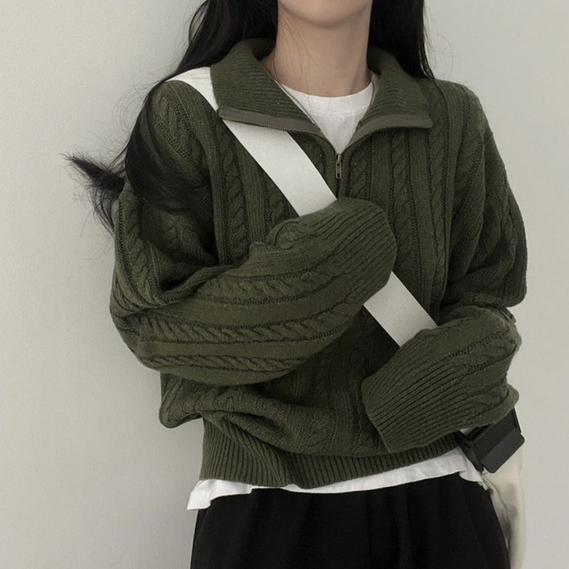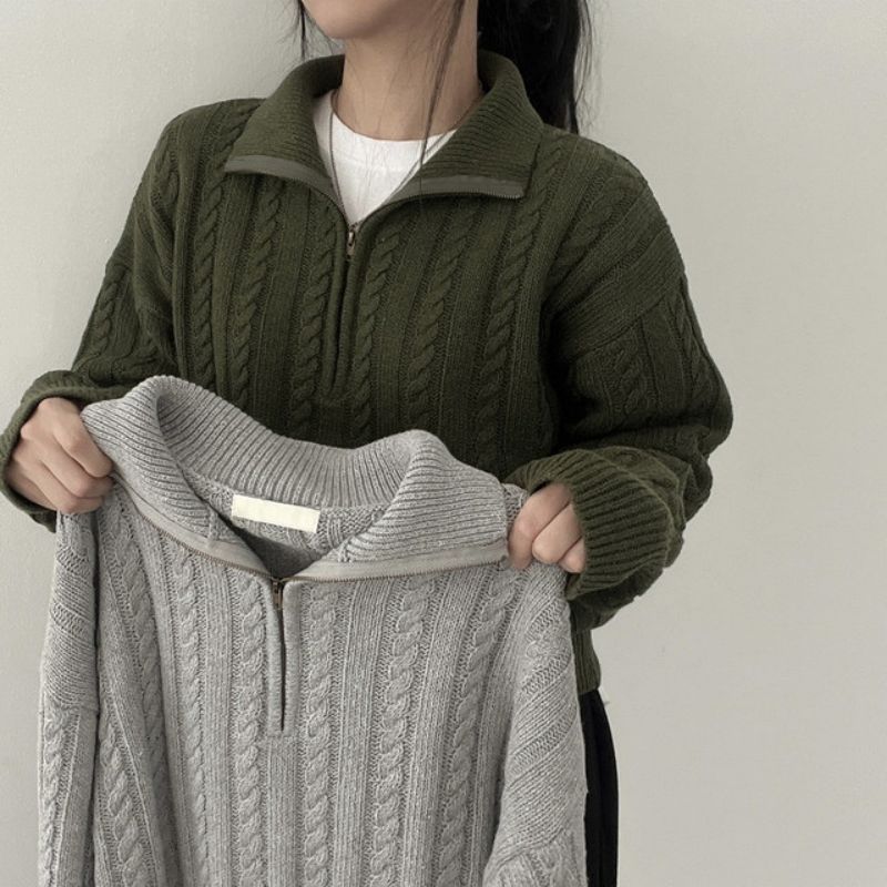 한국 세련된 가을과 겨울 두꺼운 니트 탑 여자 레트로 트위스트 하프 지퍼 게으른 올 매치 쇼트 스웨터 재킷스토어 가기