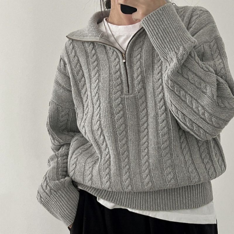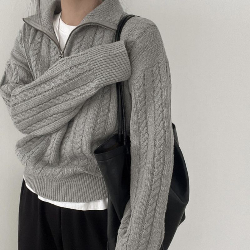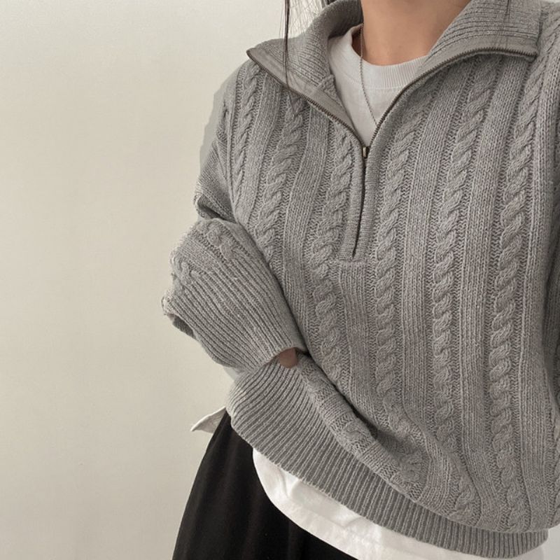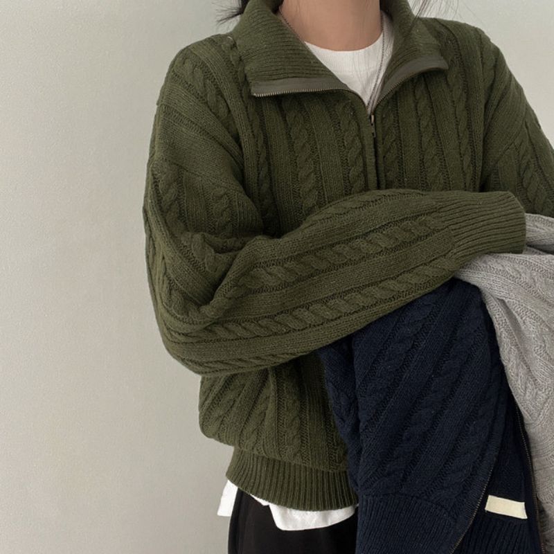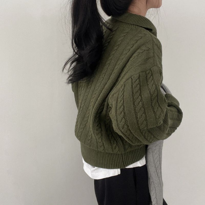 한국 세련된 가을과 겨울 두꺼운 니트 탑 여자 레트로 트위스트 하프 지퍼 게으른 올 매치 쇼트 스웨터 재킷스토어 가기