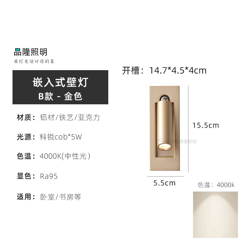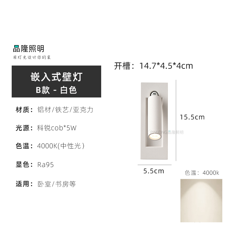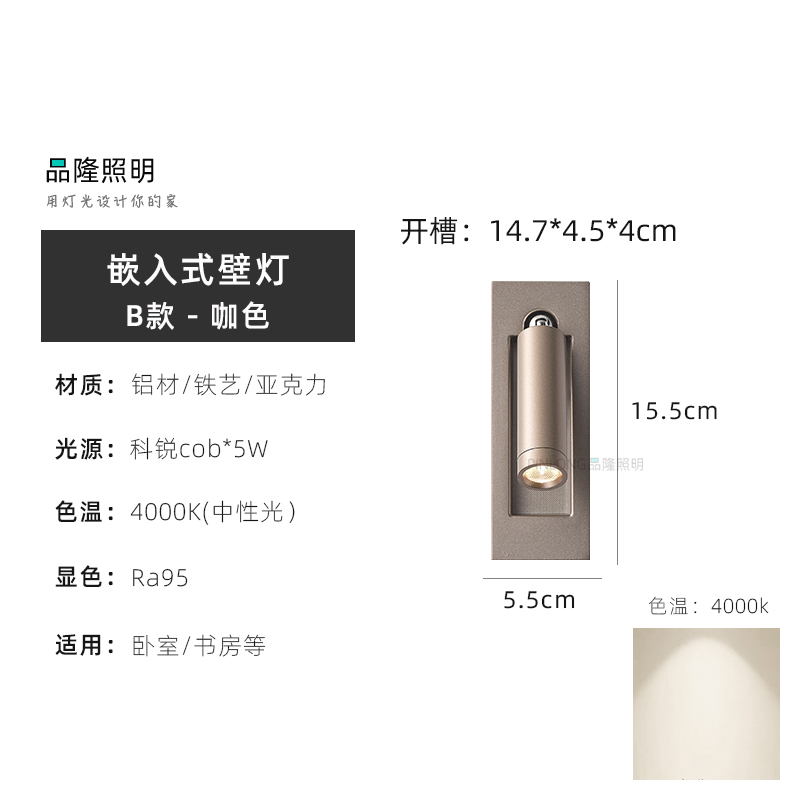 현대 미니멀 한 led 벽 램프 임베디드 침실 침대 옆 램프 호텔 객실 연구 독서 램프 눈 보호 95 컬러 렌더링스토어 가기