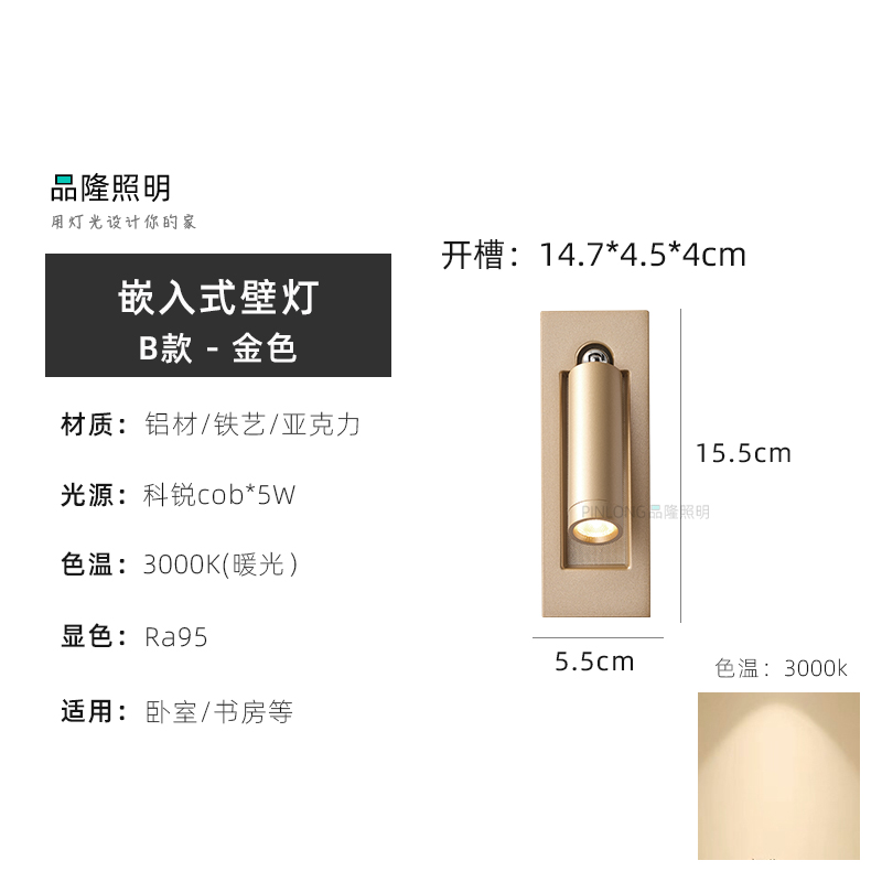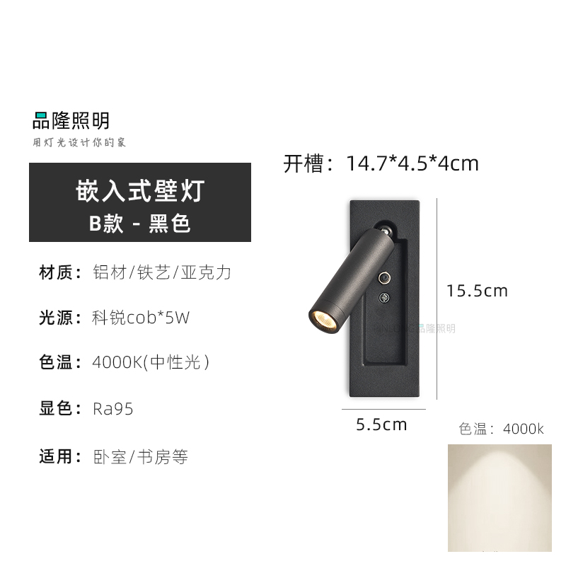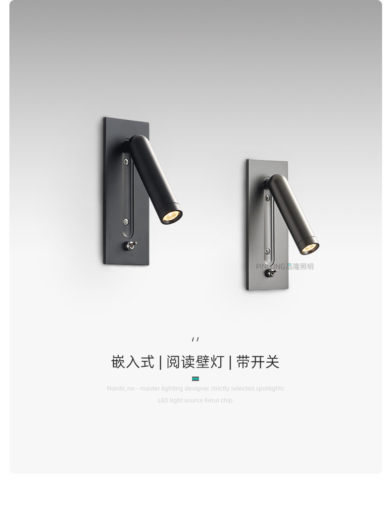 현대 미니멀 한 led 벽 램프 임베디드 침실 침대 옆 램프 호텔 객실 연구 독서 램프 눈 보호 95 컬러 렌더링
