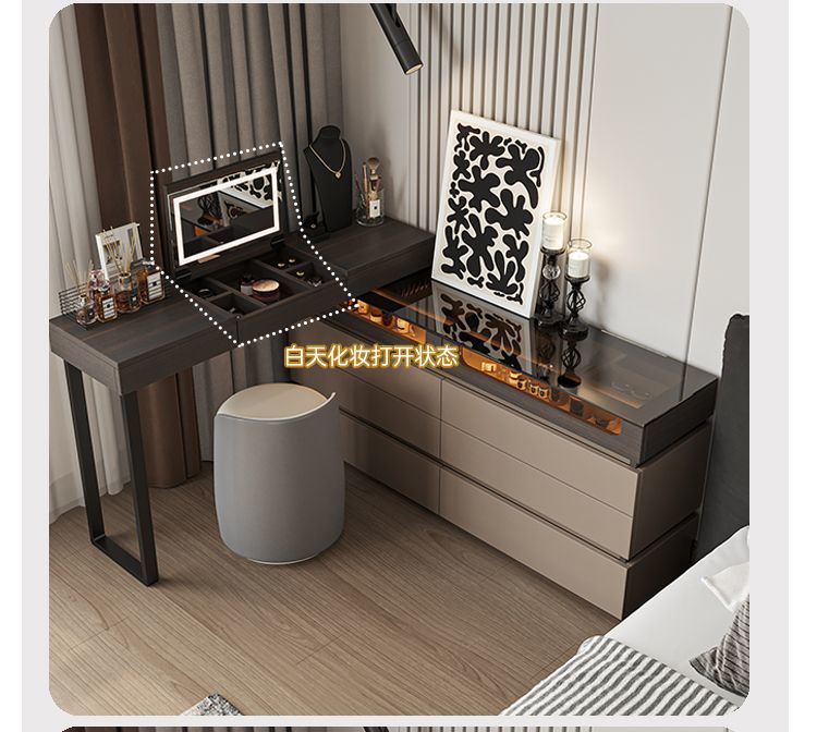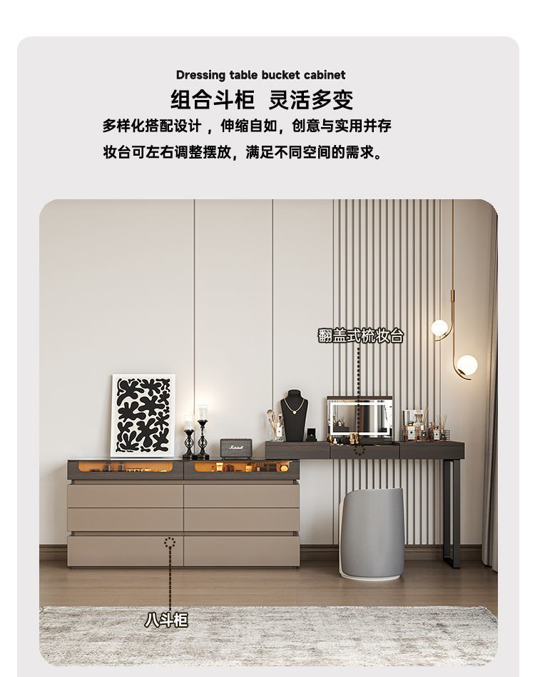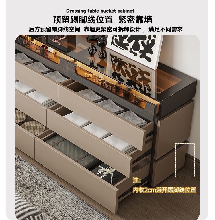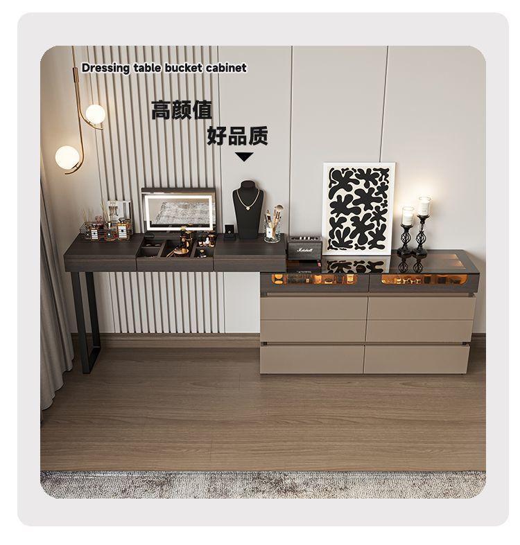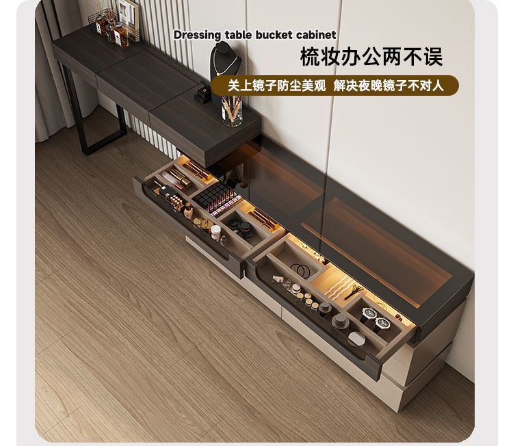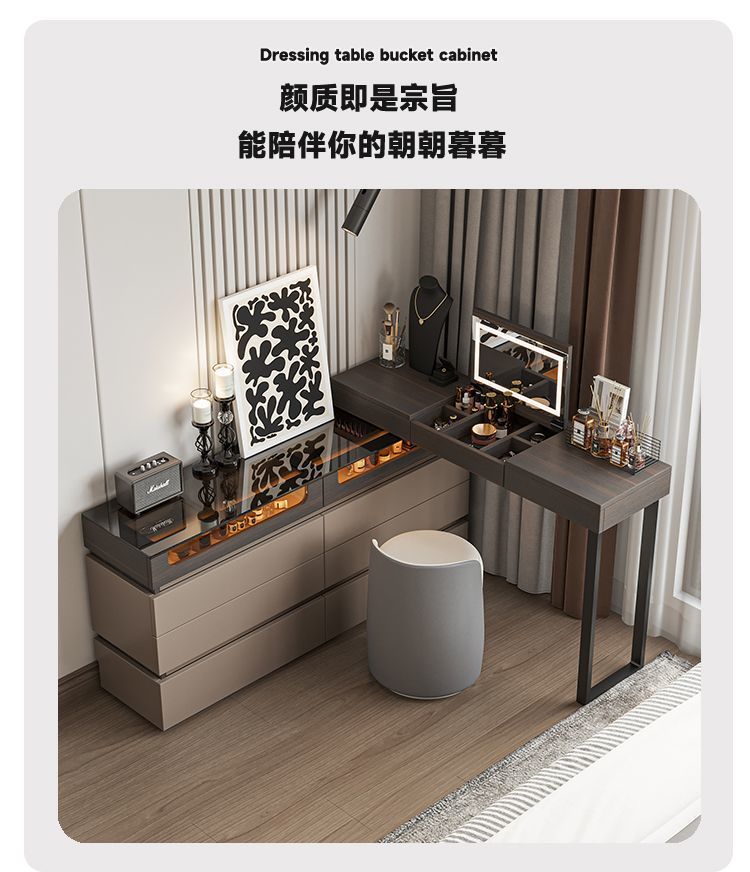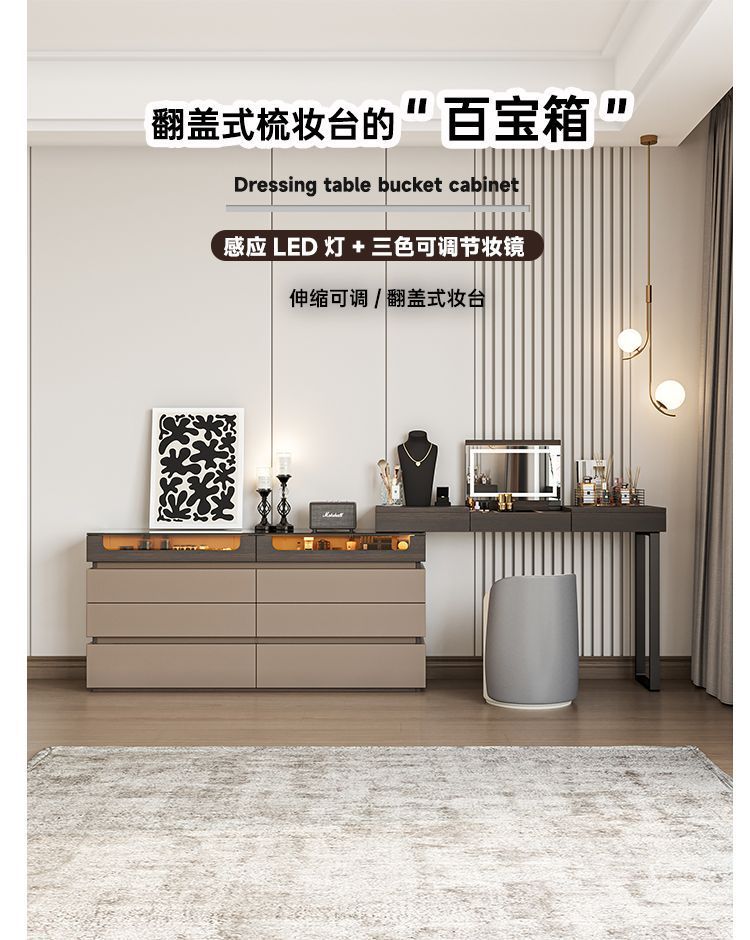 이탈리아 스타일 미니멀리스트 드레싱 테이블 버킷 캐비닛 통합 현대 빛 고급 고급 고급 침실 침대 끝 플립 메이크업 테이블 보관 캐비닛