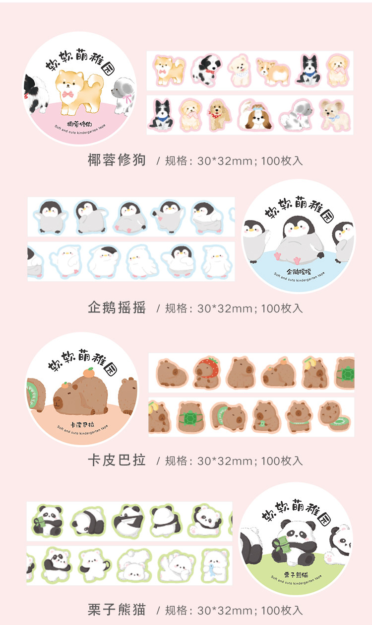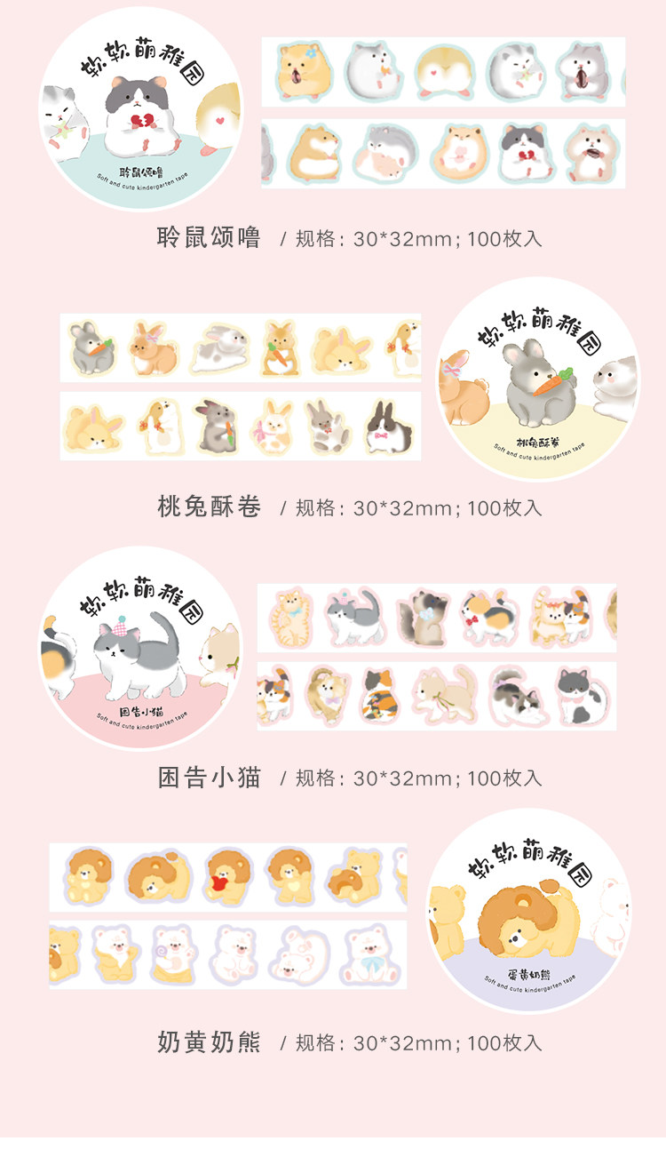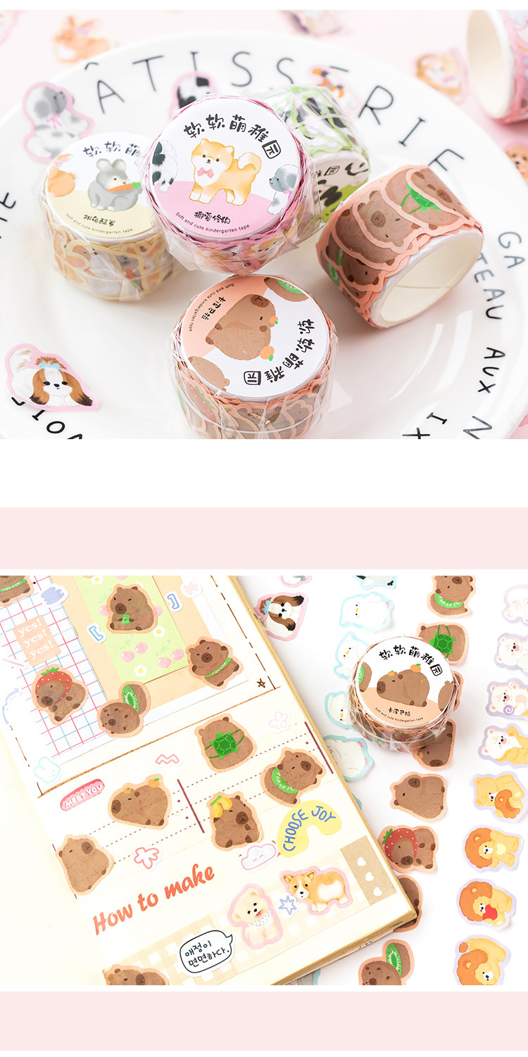 메시지 부드러운 Meng Zhiyuan 콜라주 테이프 외계인 만화 동물 요소 손 계정 diy 장식 페이스트 100 8스토어 가기