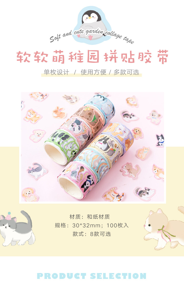 메시지 부드러운 Meng Zhiyuan 콜라주 테이프 외계인 만화 동물 요소 손 계정 diy 장식 페이스트 100 8