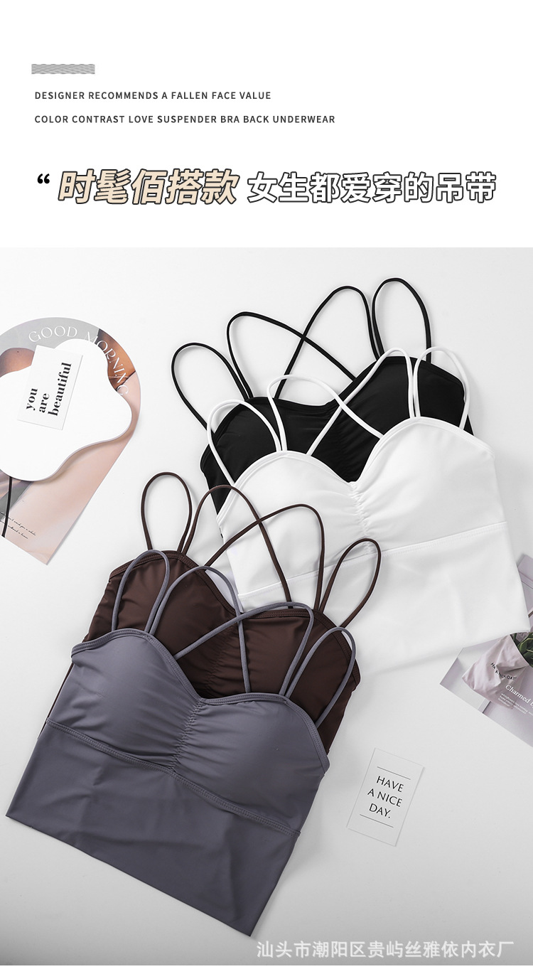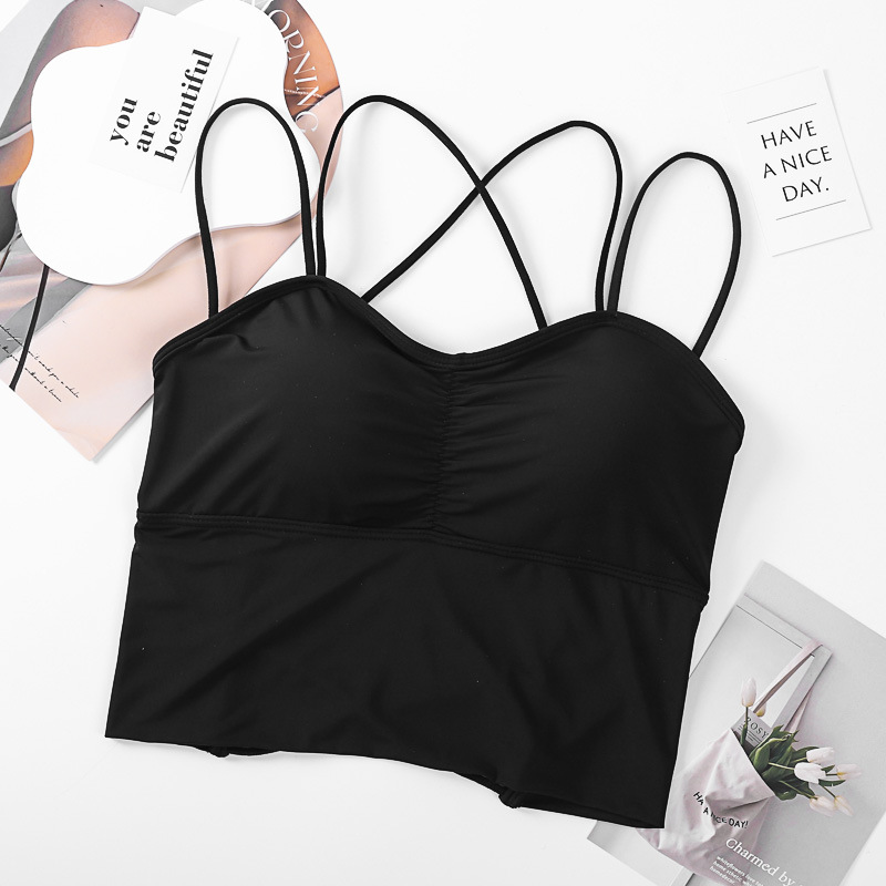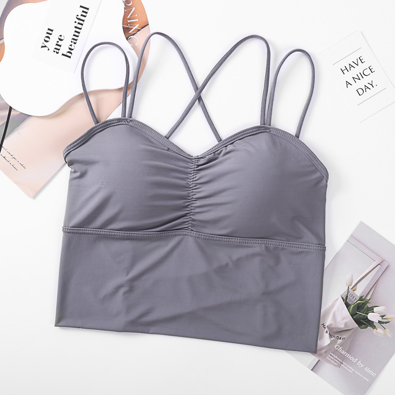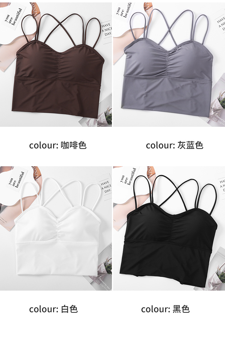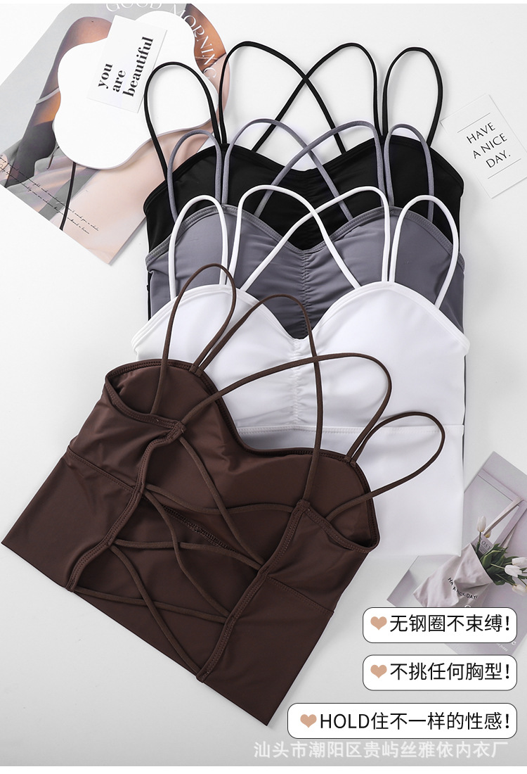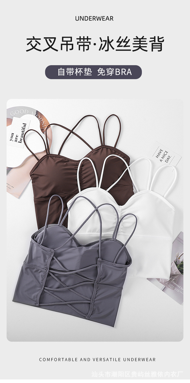 얼음 실크 시원한 느낌 크로스 얇은 벨트 아름다운 등 가슴 패드가있는 강철 고리가없는 가슴 튜브 내부 및 외부 마모 캐미솔스토어 가기